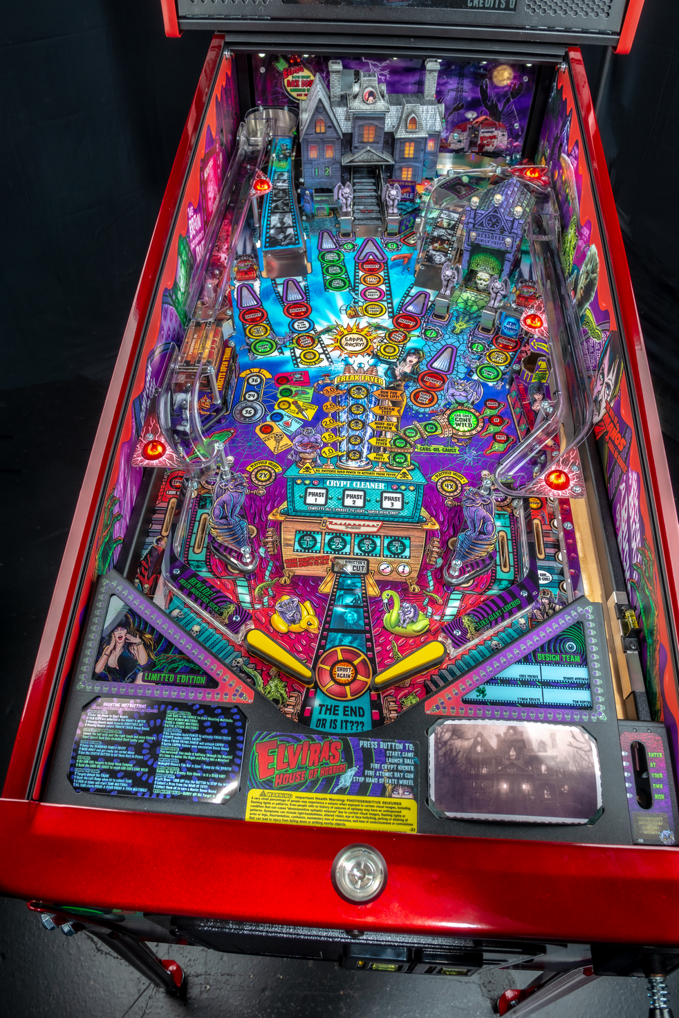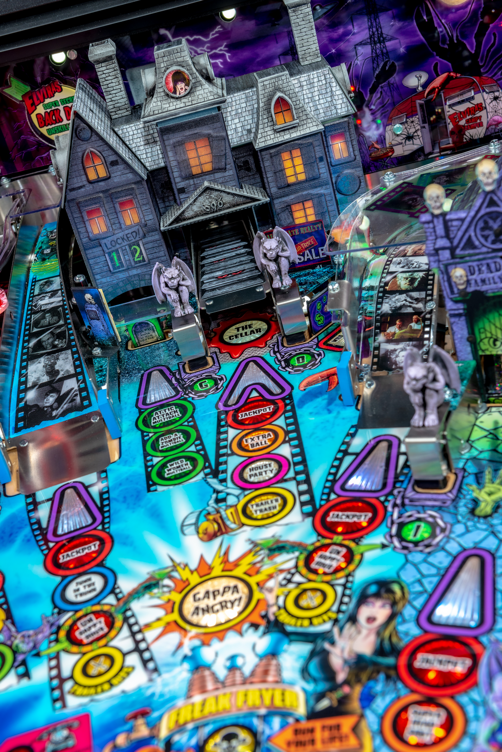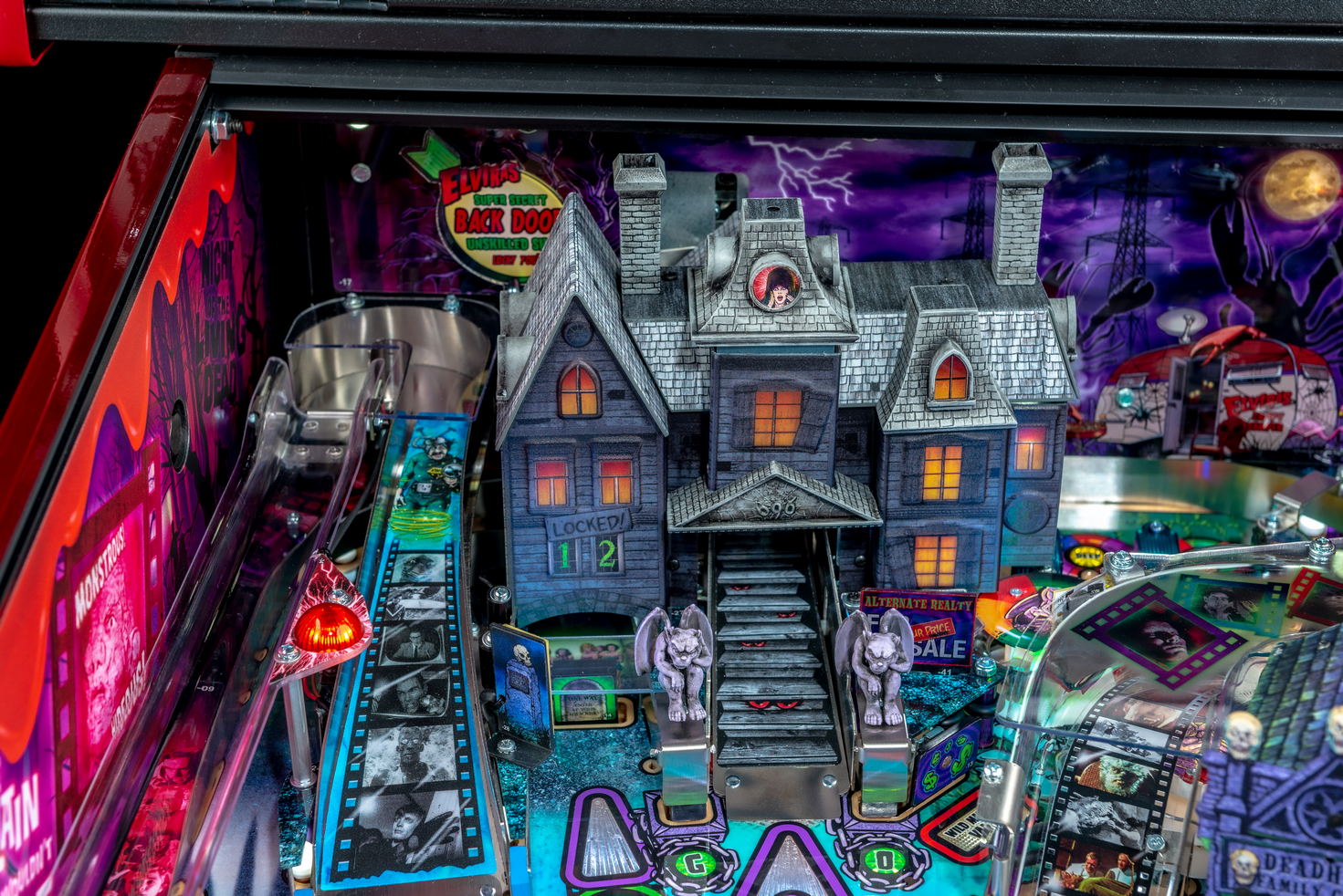 Los modelos Premium, Limited Edition y Signature Edition cuentan con la "Casa de los horrores" de Elvira, una aterradora casa superior victoriana, llena de espeluznante encanto y sorpresas sobrenaturales. Los jugadores pueden acceder a la mansión a través de la puerta principal, el sótano o el garaje que está protegido por un objetivo de caída de lápidas. Una orquesta de luces RGB que cambian de color acentúa la casa en sincronía con los diferentes "House Haunts" presentados a lo largo del juego. Las ventanas iluminadas y una torreta giratoria del ático siguen el progreso de los jugadores en su viaje de pinball.