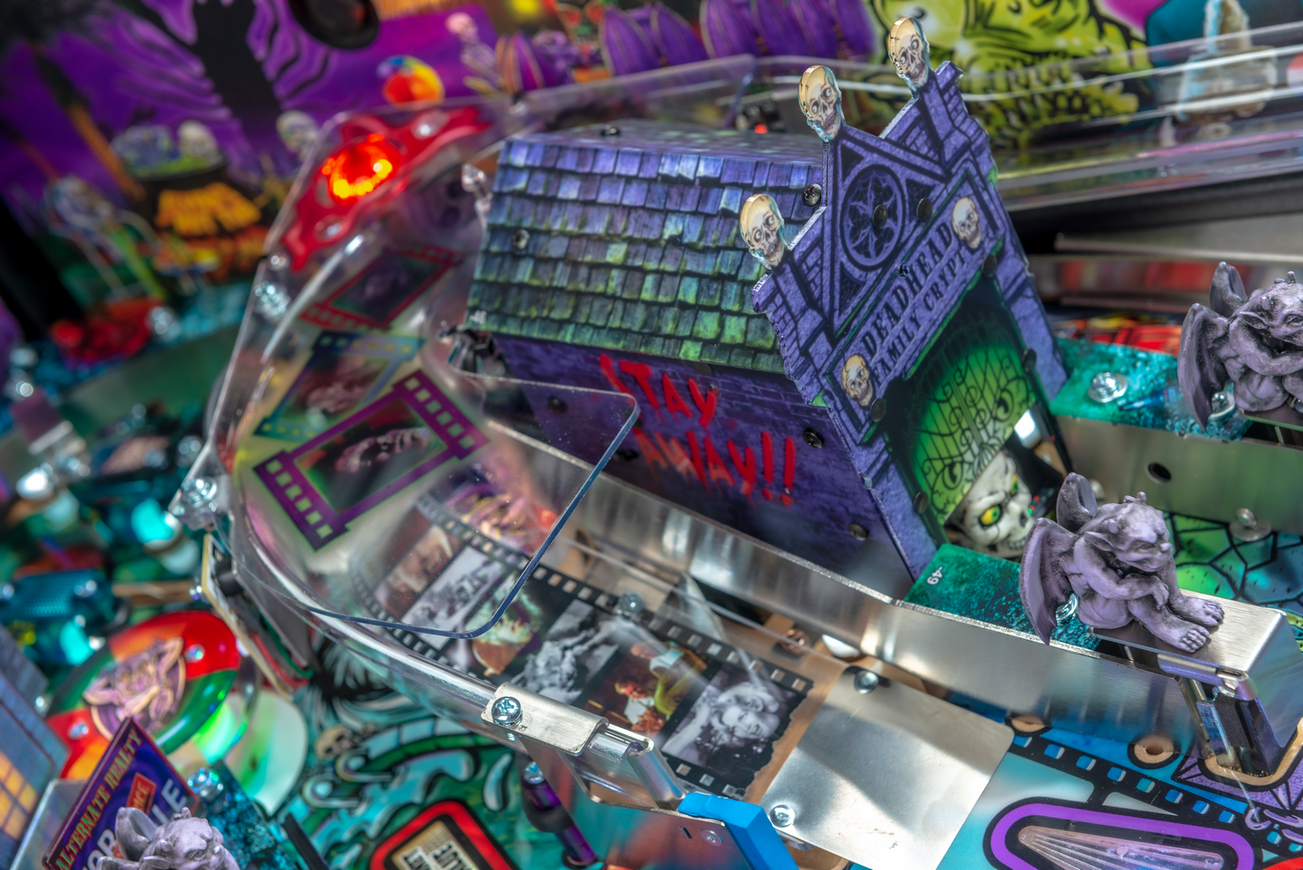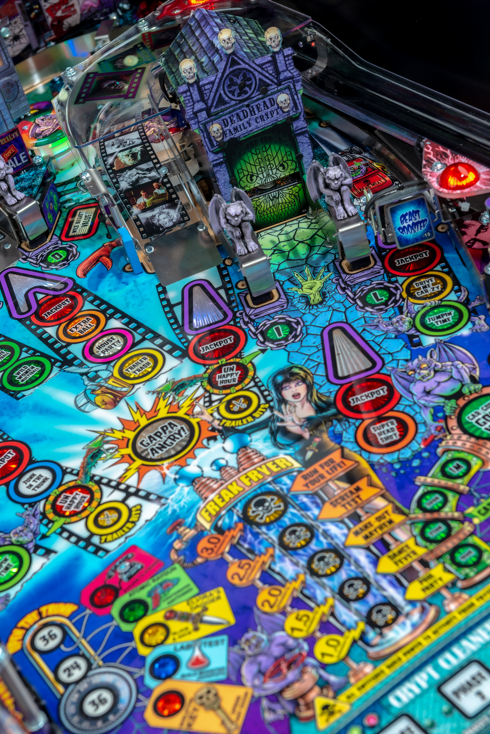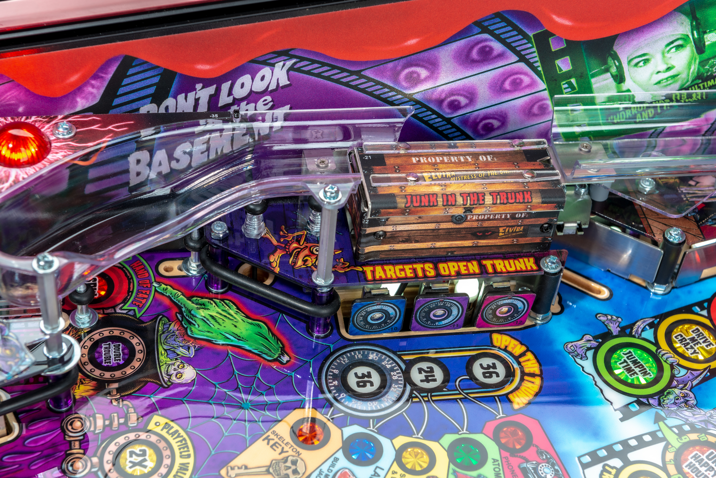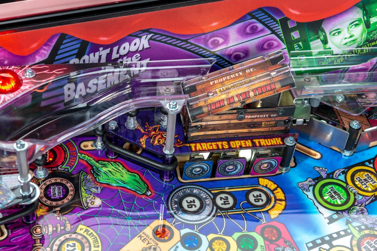Si una mansión embrujada no era suficiente para mantener tu piel arrastrándose, ¡ten cuidado con la "Cripta de la familia Deadhead"! Este mausoleo alberga una variedad de personajes que necesitan un despertar por cortesía de una bola plateada de acero en su cabeza. Esta cripta interactiva mantendrá a los jugadores alerta con la entrada de la cripta desatando bolas desde un lugar separado y al mismo tiempo se convertirá en un juguete físico. Y con el movimiento pendiente de Elvira de su venta de casas esperanzadora, el juguete interactivo de Elvira "Junk in the Trunk" permite a los jugadores bloquear las bolas para una frenética multibola de dos bolas.