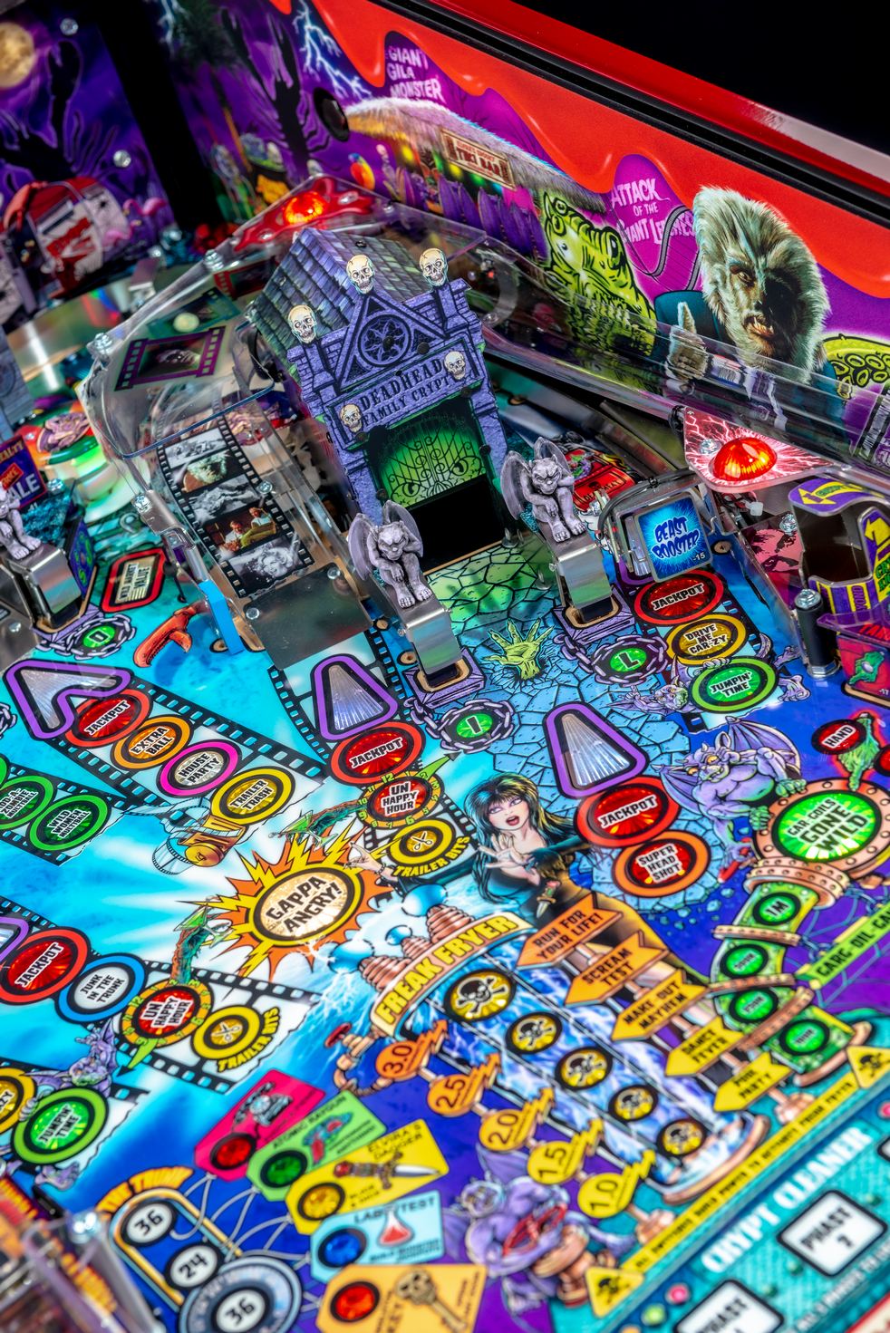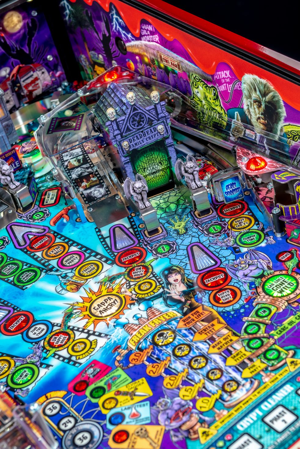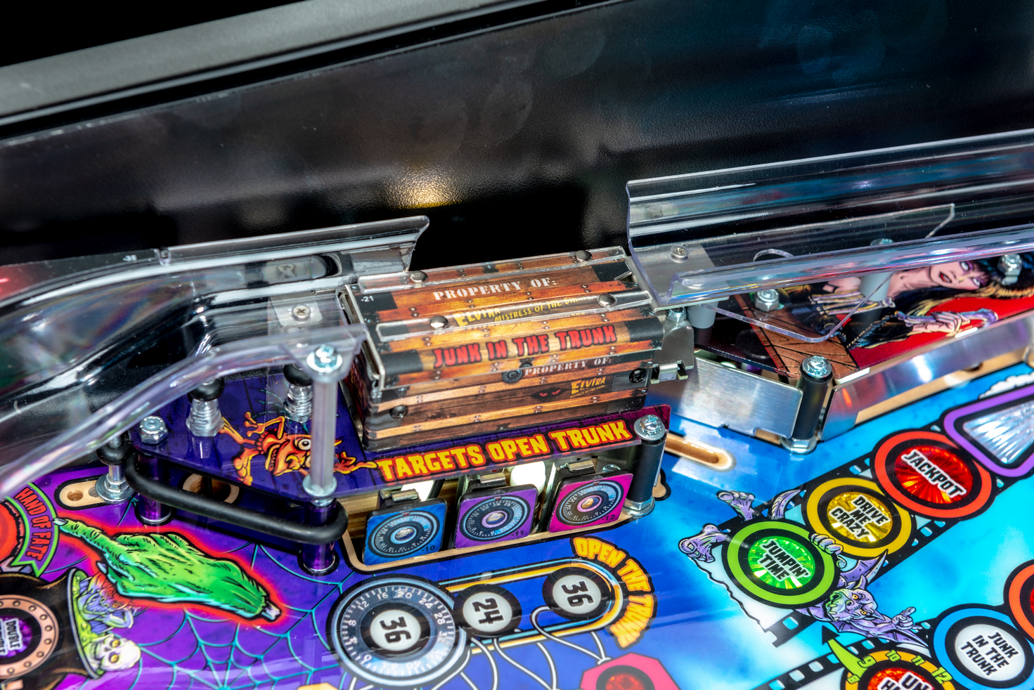 Si una mansión embrujada no era suficiente para mantener tu piel arrastrándose, ¡ten cuidado con la "Cripta de la familia Deadhead"! Este mausoleo alberga una variedad de personajes que necesitan un despertar por cortesía de una bola plateada de acero en su cabeza. Esta cripta interactiva mantendrá a los jugadores alerta con la entrada de la cripta desatando bolas desde un lugar separado y al mismo tiempo se convertirá en un juguete físico. Y con el movimiento pendiente de Elvira de su venta de casas esperanzadora, el juguete interactivo de Elvira "Junk in the Trunk" permite a los jugadores bloquear las bolas para una frenética multibola de dos bolas.
