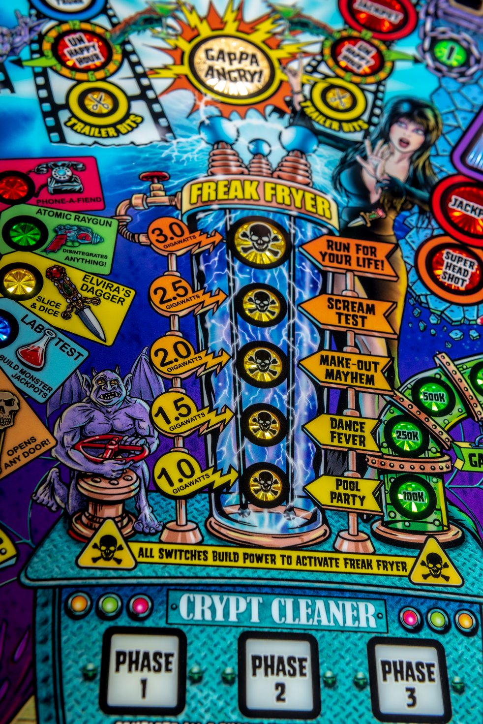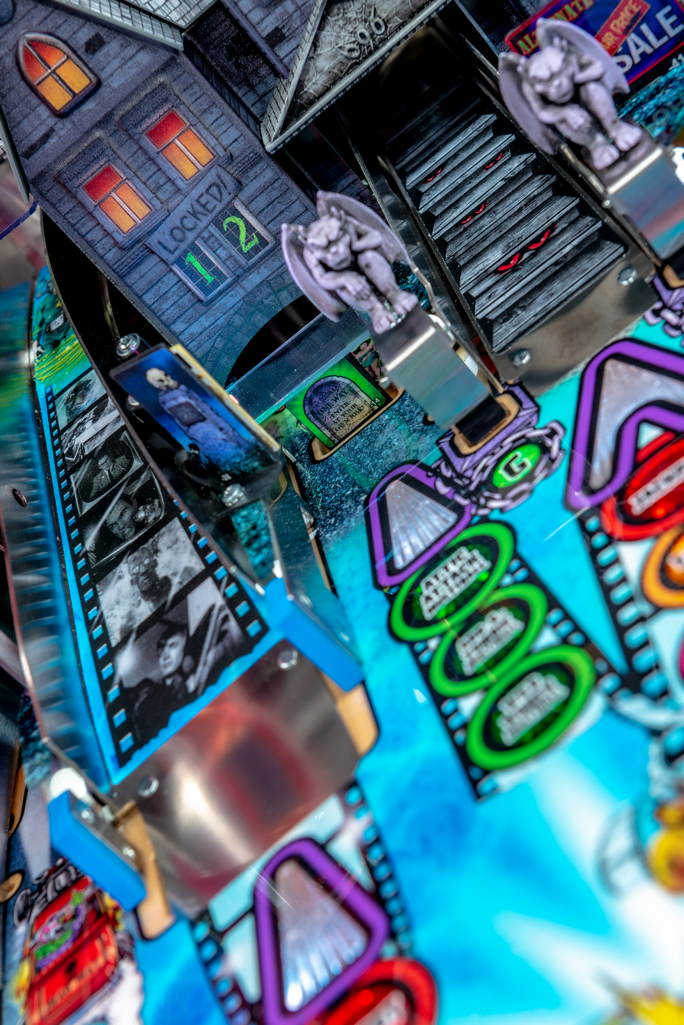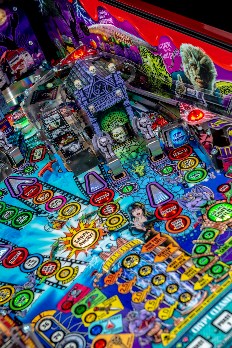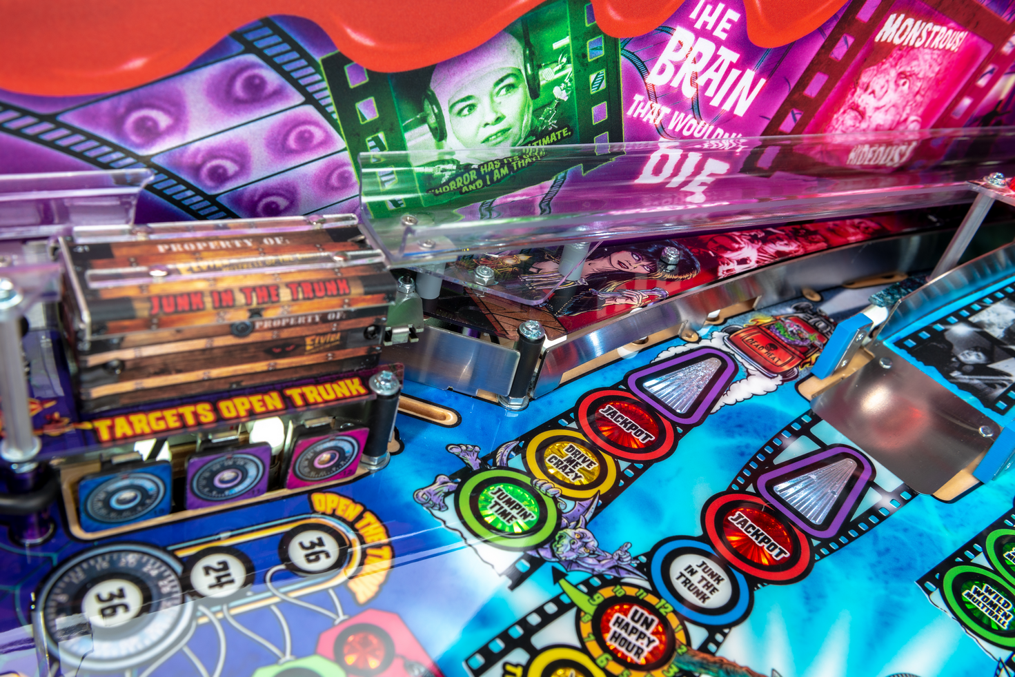 Si una mansión embrujada no era suficiente para mantener tu piel arrastrándose, ¡ten cuidado con la "Cripta de la familia Deadhead"! Este mausoleo alberga una variedad de personajes que necesitan un despertar por cortesía de una bola plateada de acero en su cabeza. Esta cripta interactiva mantendrá a los jugadores alerta con la entrada de la cripta desatando bolas desde un lugar separado y al mismo tiempo se convertirá en un juguete físico. Y con el movimiento pendiente de Elvira de su venta de casas esperanzadora, el juguete interactivo de Elvira "Junk in the Trunk" permite a los jugadores bloquear las bolas para una frenética multibola de dos bolas.