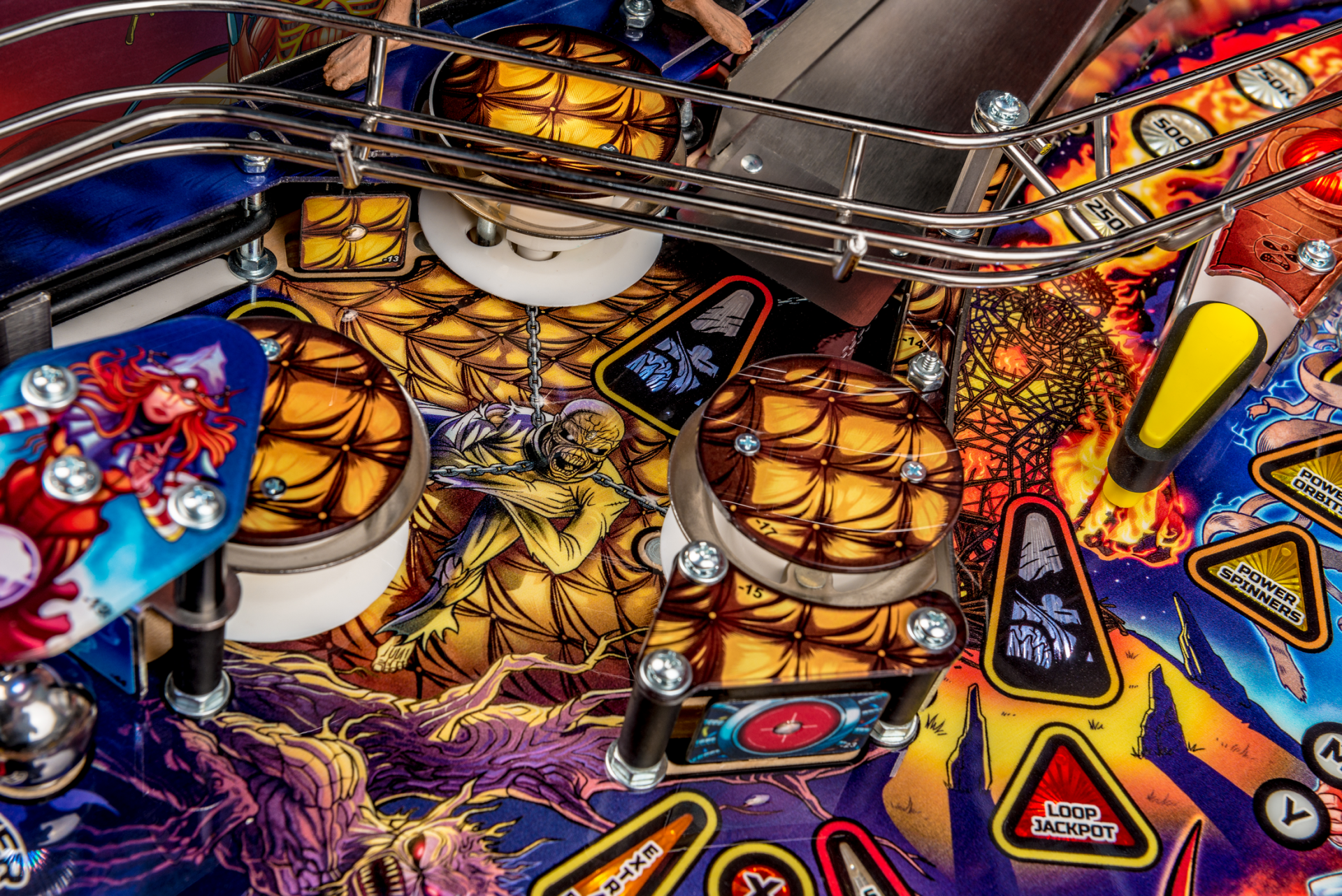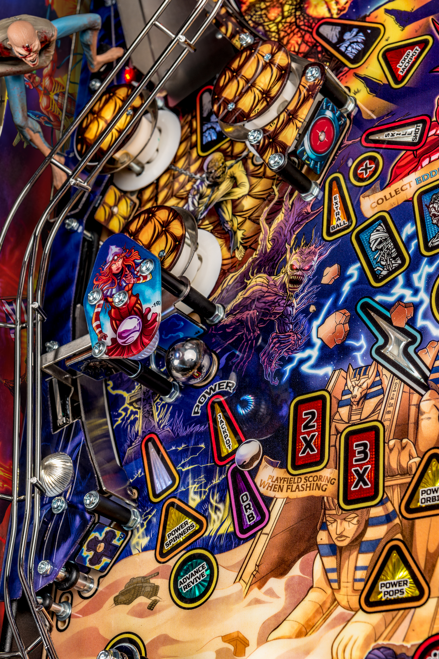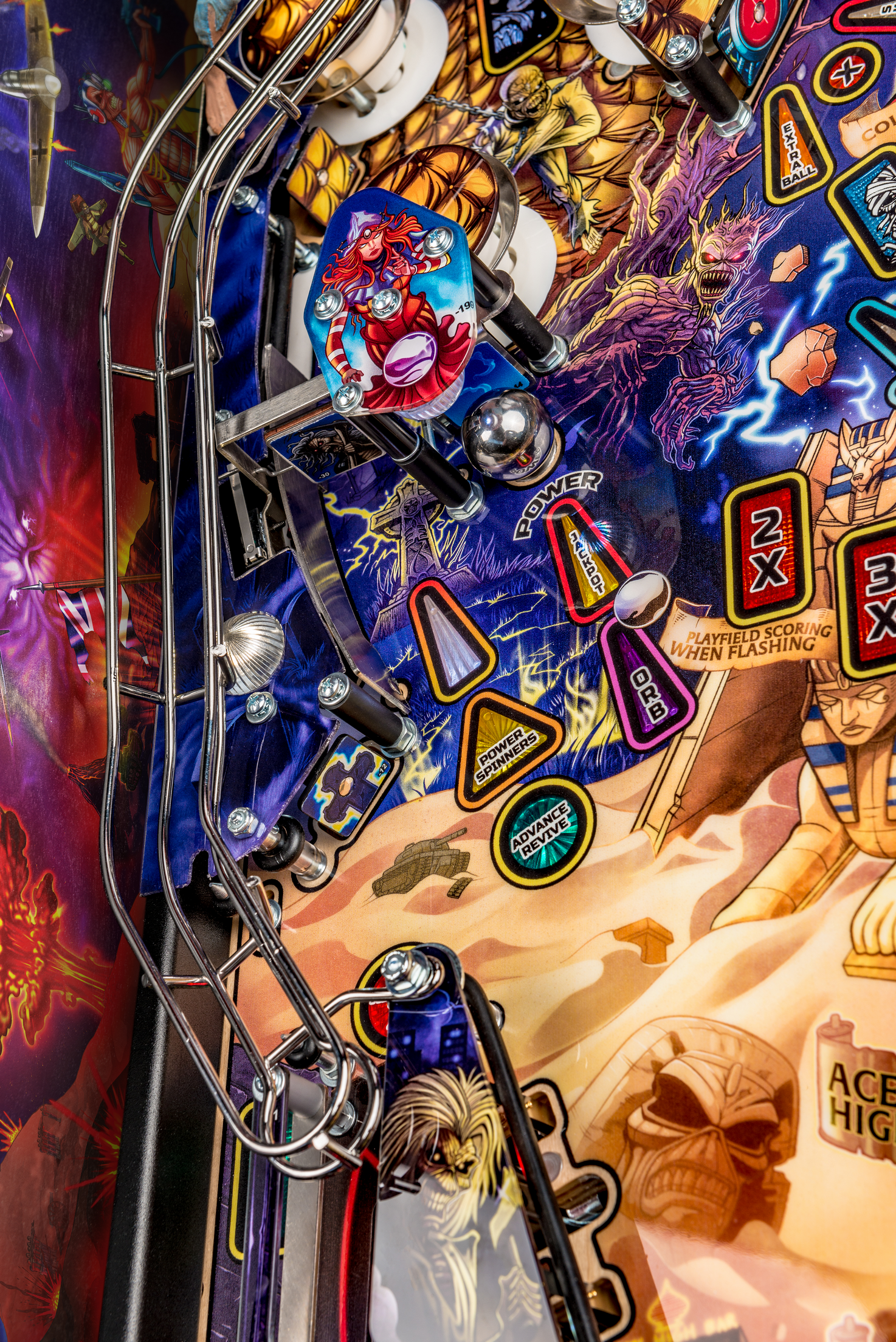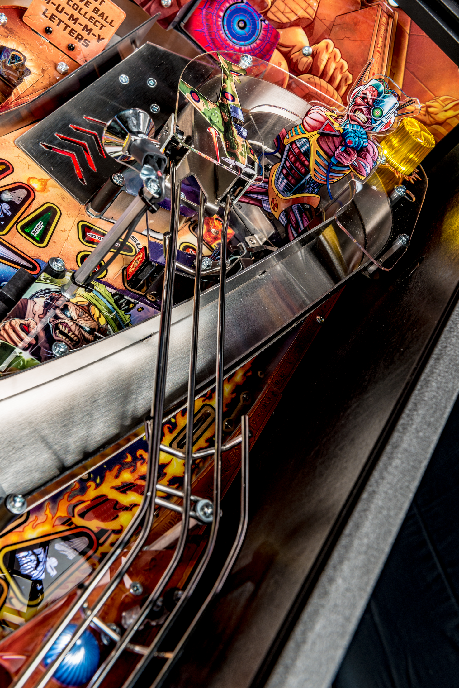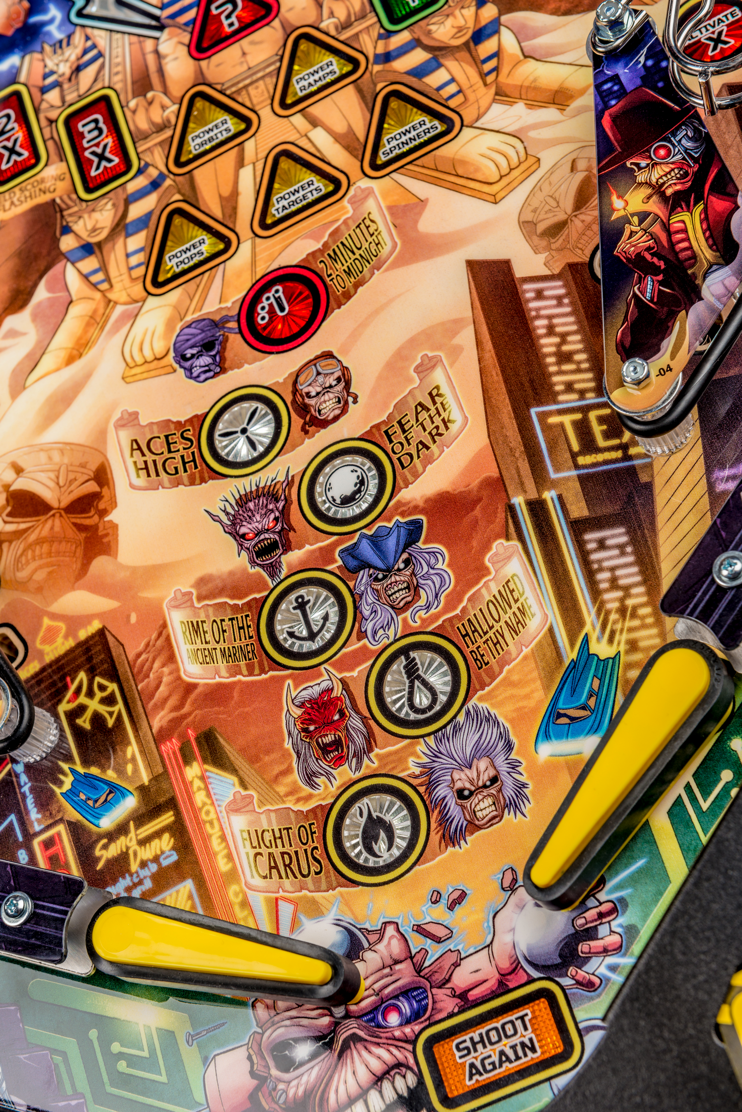 Todos los modelos incluyen doce canciones de Iron Maiden con jugadores que irán a la batalla como Eddie con la ayuda de cuatro aletas, dos hilanderos, un conjunto de objetivos de caída de 3 bancos, rampas de metal y forma de alambre, un mecanismo de bola cautiva, un mecanismo de bloqueo de doble poste , y un objetivo central de tiro al blanco.