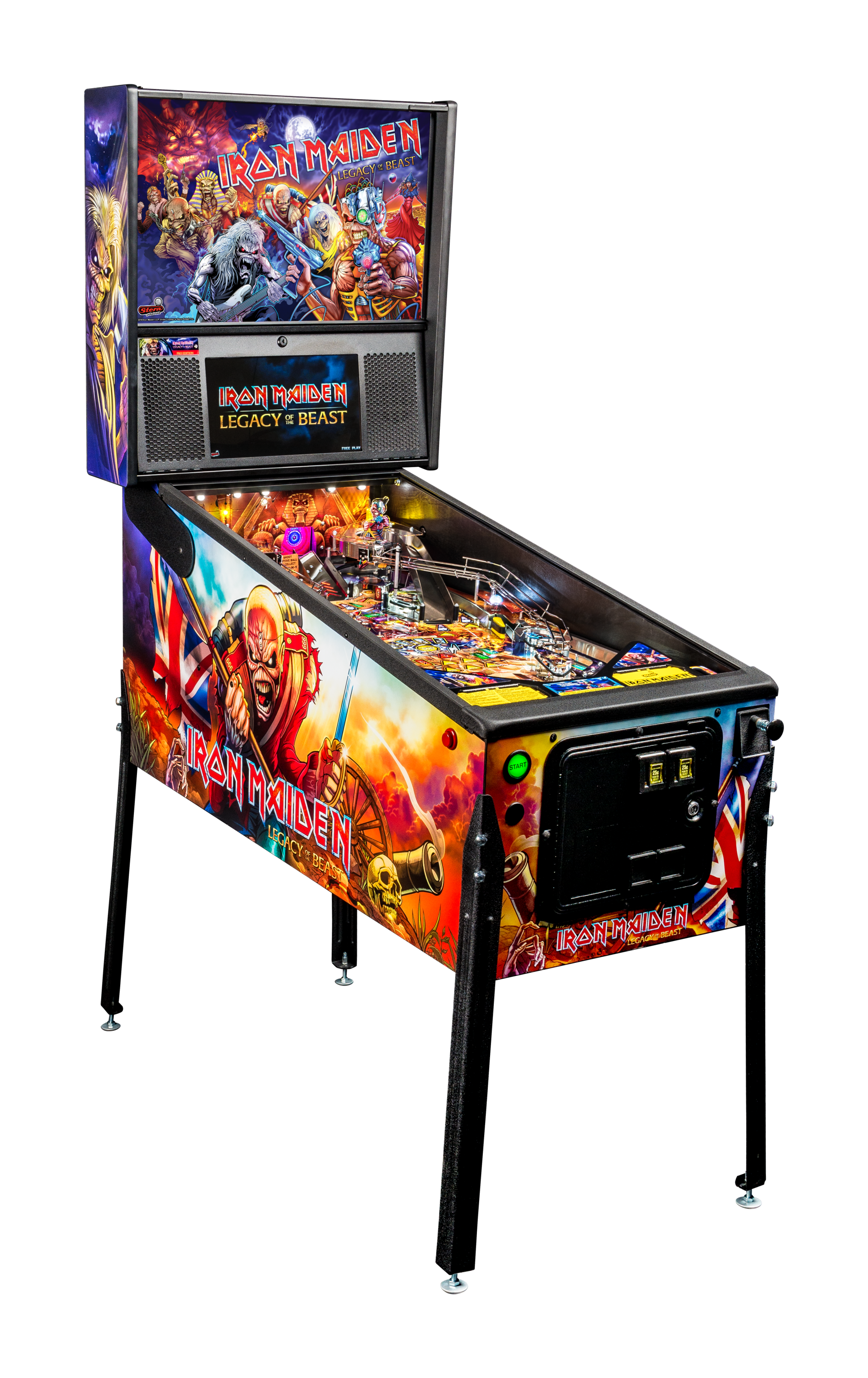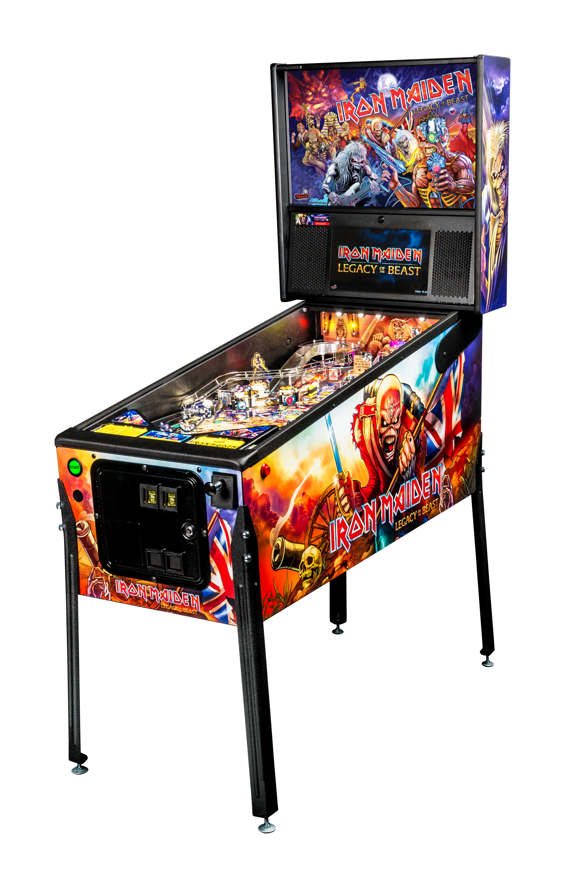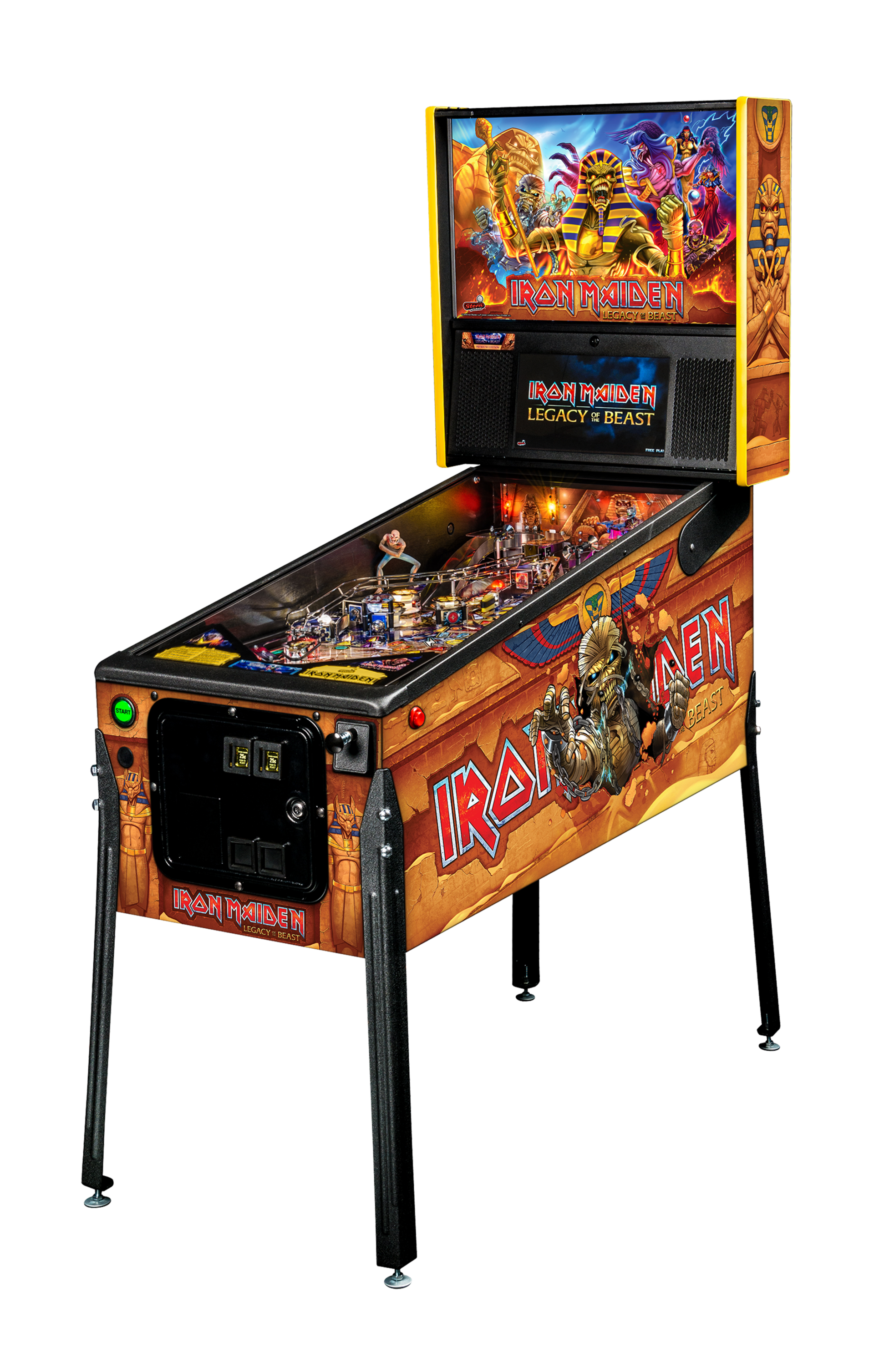 Las máquinas de pinball Iron Maiden tienen como objetivo reflejar la misma emoción, energía y experiencia de un concierto en vivo de Iron Maiden. Los jugadores se sumergirán en un universo interactivo de Iron Maiden que se transformará en varias formas de Eddie, la mascota legendaria de la banda. Los jugadores, como Eddie, se embarcarán en una búsqueda para derrotar a la Bestia y sus secuaces a través del juego móvil Legacy of the Beast y el mundo del cómic. El pinball Iron Maiden se entretiene con una increíble variedad de características modernas y clásicas, lo que lo hace adecuado para todos los niveles de habilidad.
