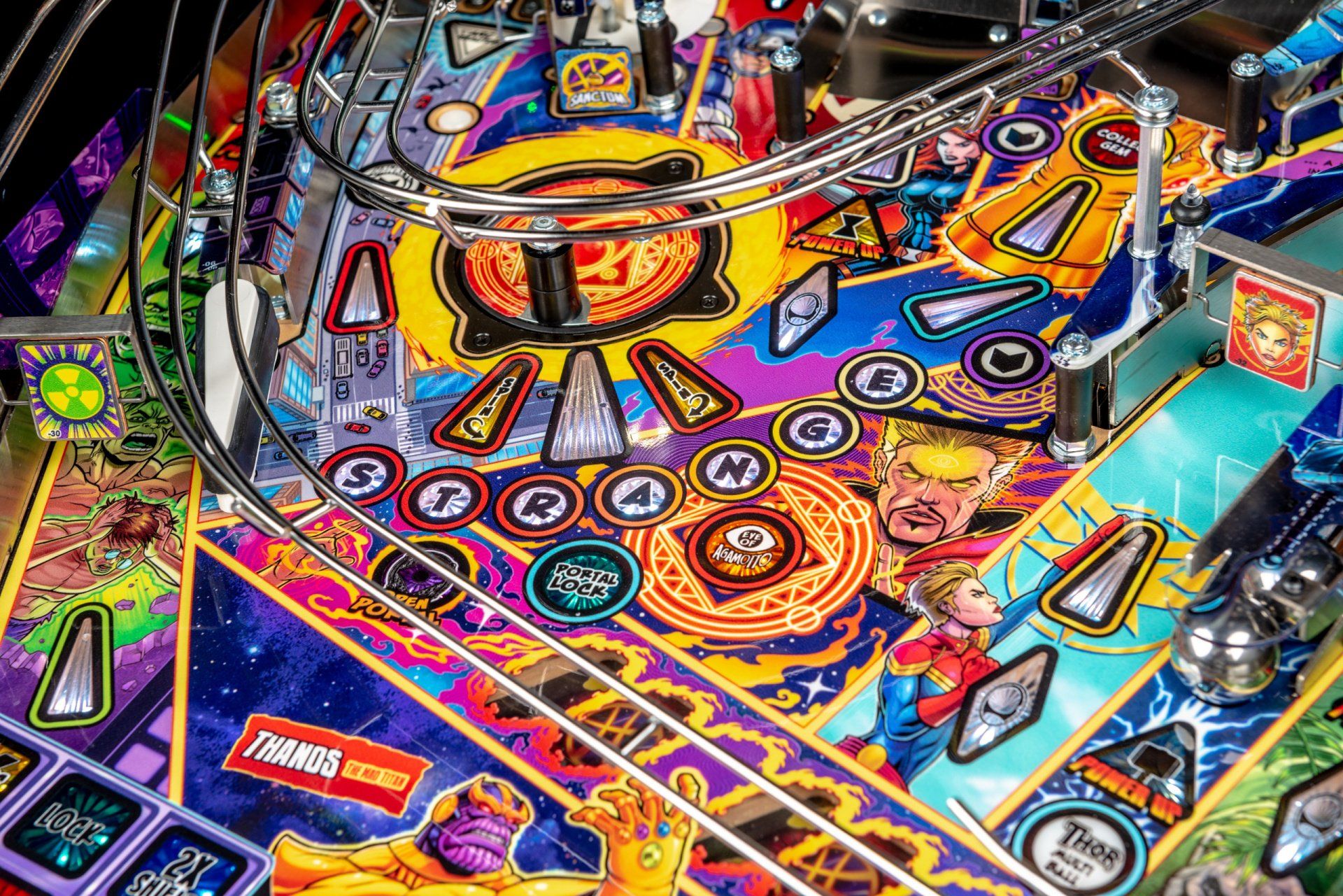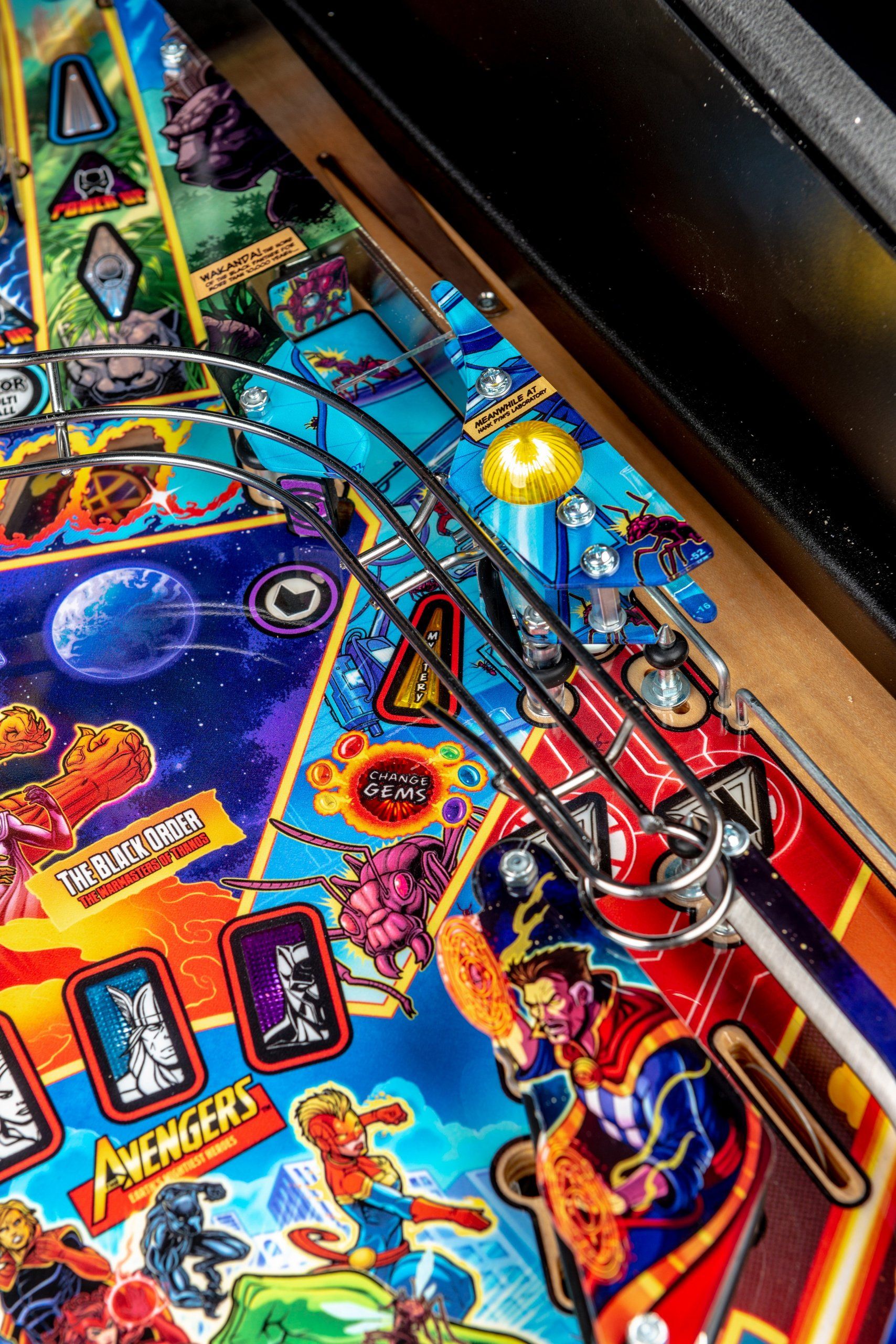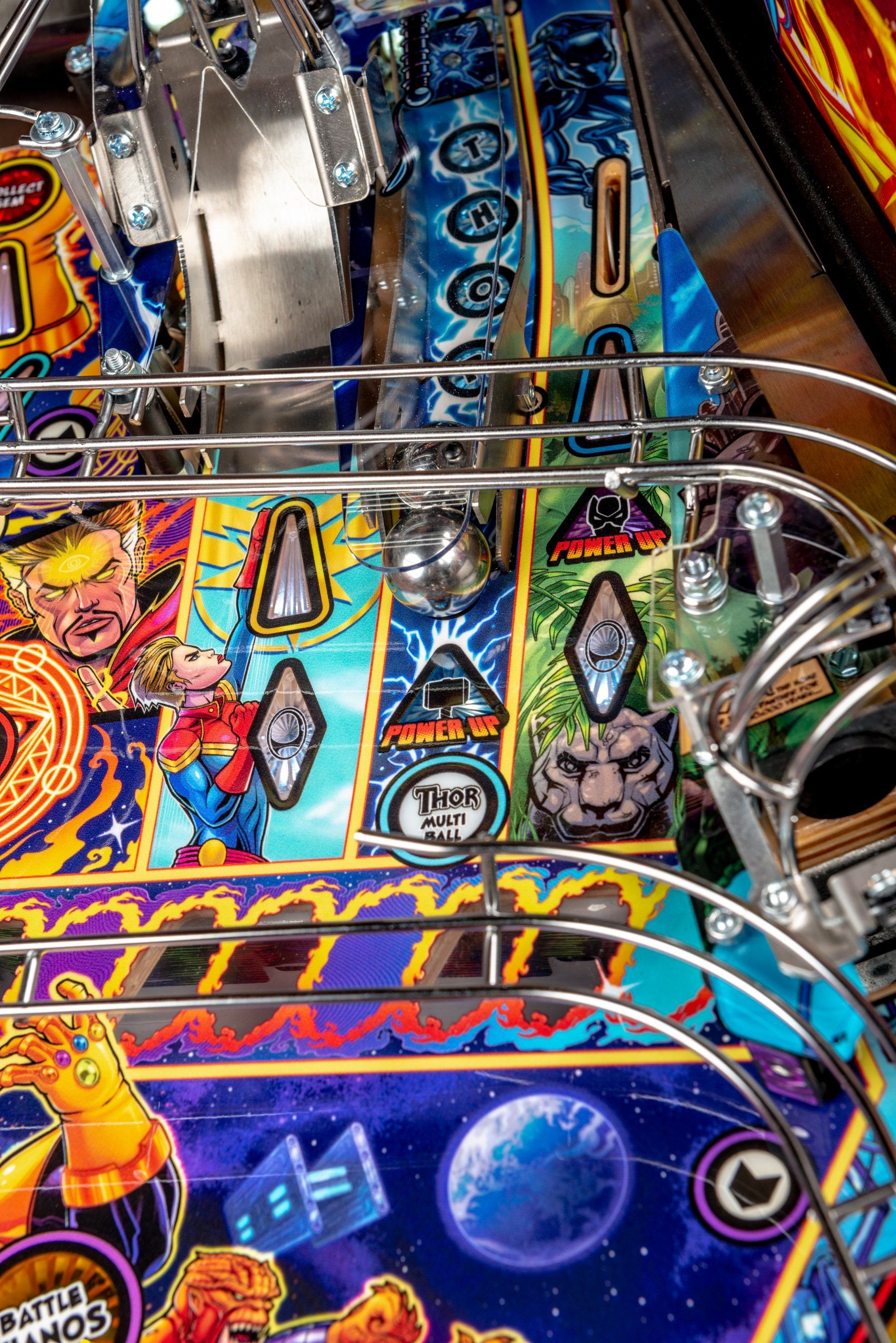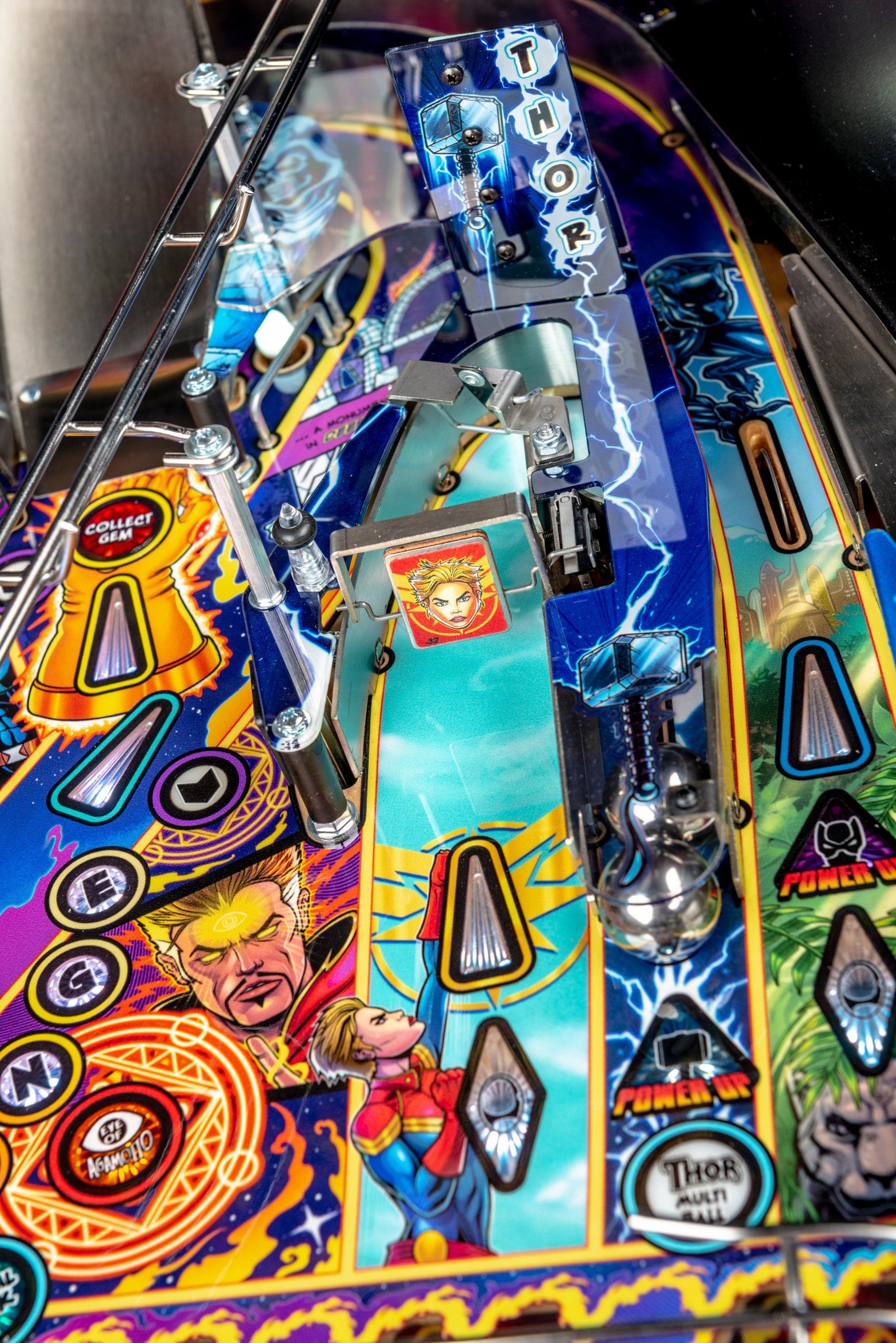 Los modelos Premium y Limited Edition cuentan con una primicia interactiva de disco emergente motorizado Dr. Strange, que transporta pinballs a un portal subterráneo, un metro visible capaz de sostener y poner en escena hasta 3 bolas a través de ventanas de campo de juego personalizadas acentuadas con efectos de iluminación RGB dinámicos. Estos modelos también incluyen un Gauntlet Thanos Infinity esculpido personalizado integrado con gemas de iluminación atmosférica, una rampa de forma de alambre personalizada de gravedad inversa del Capitán Marvel y un up-kicker vertical de Pym Laboratories.