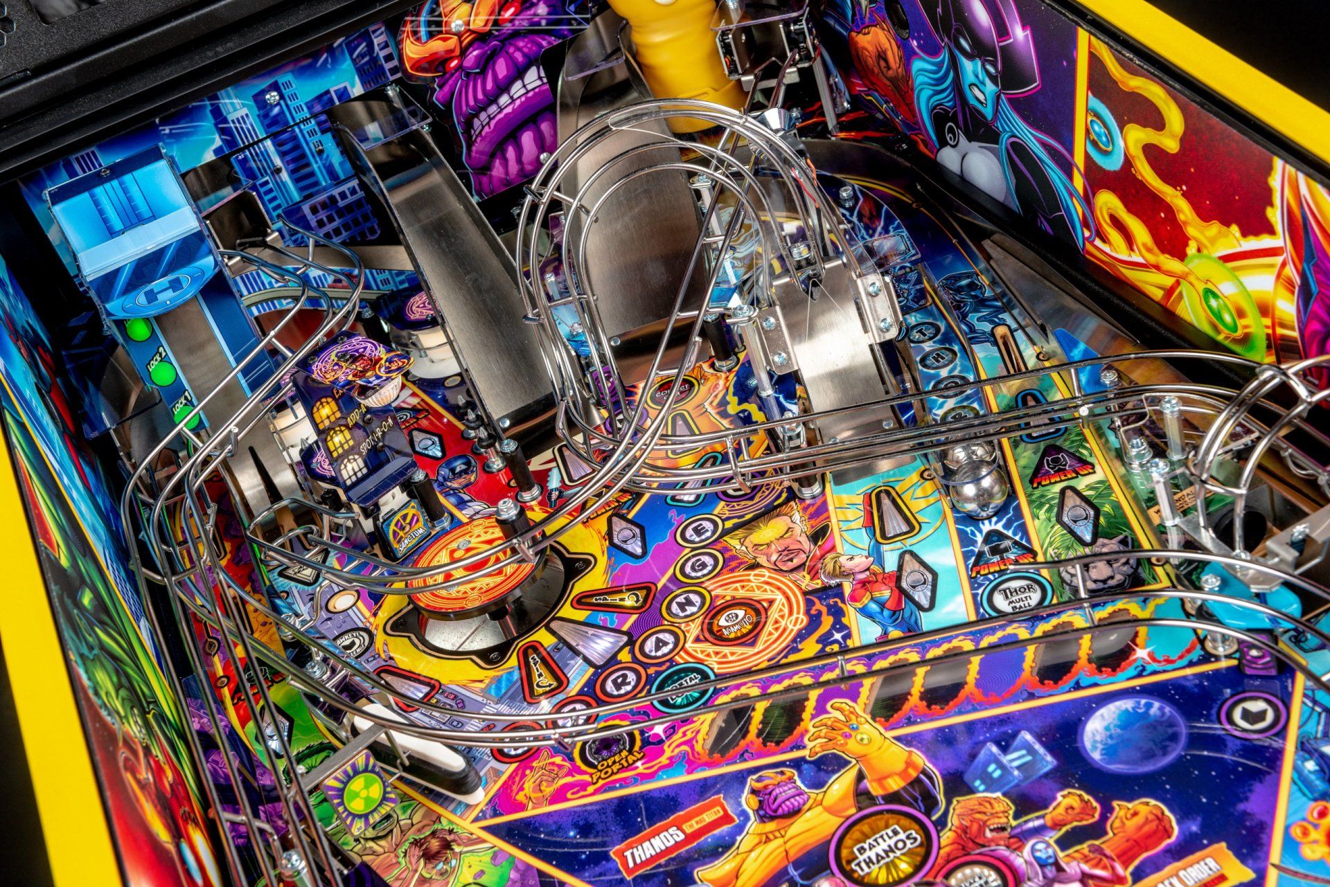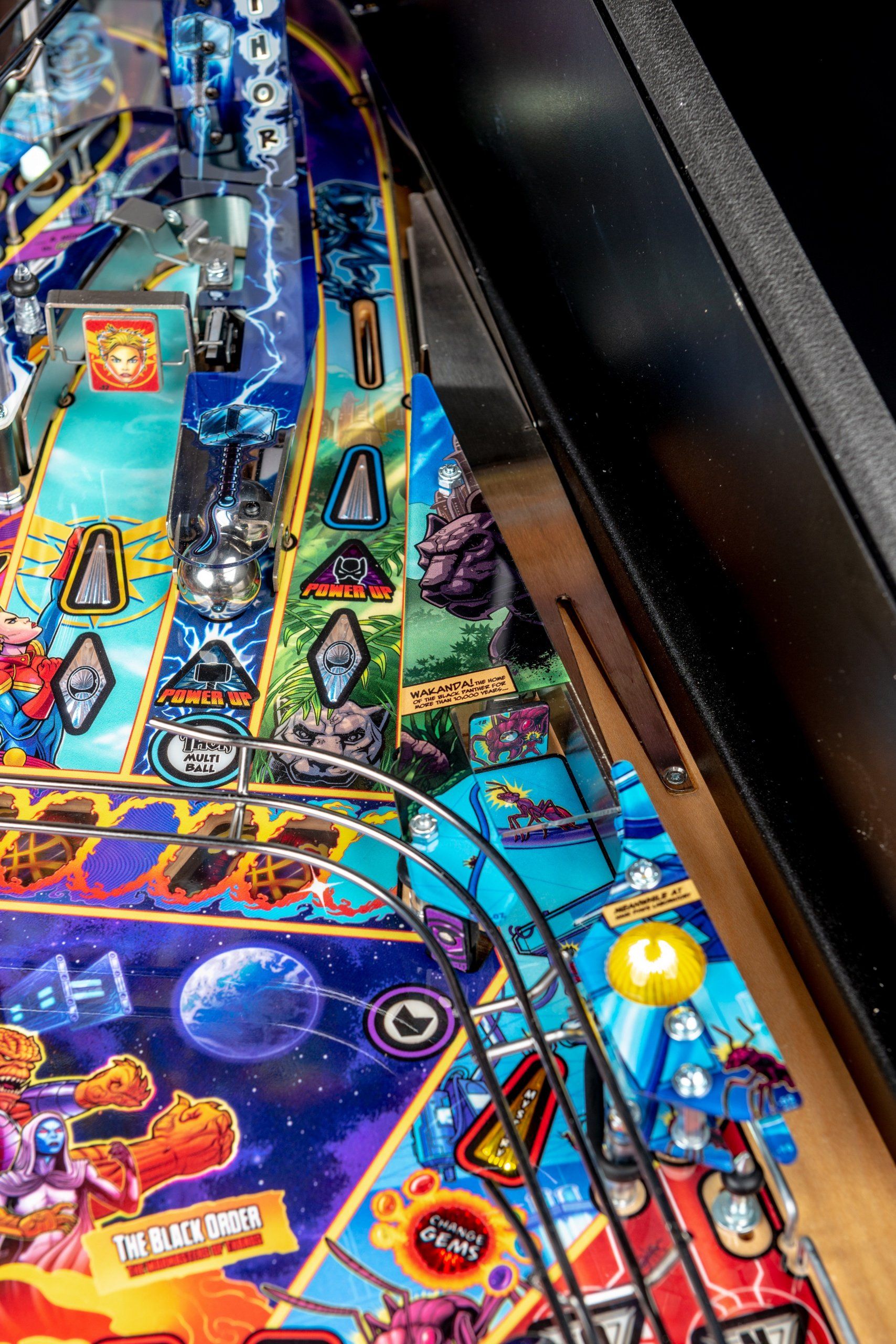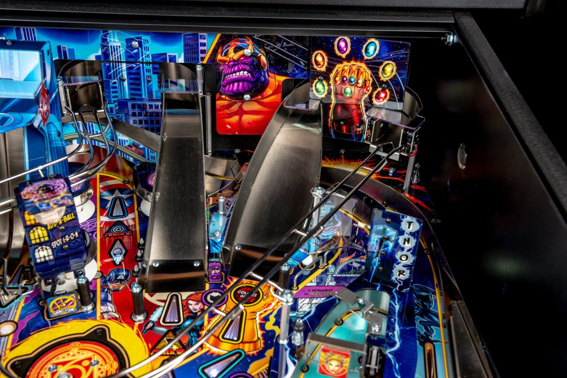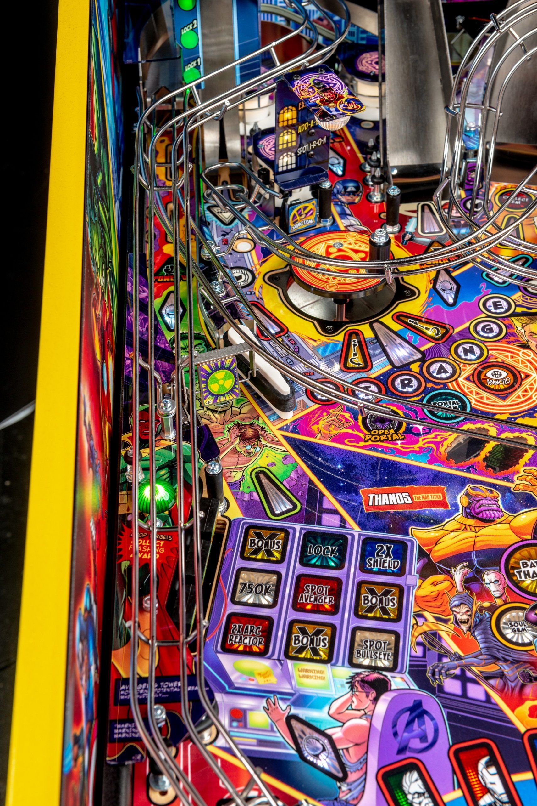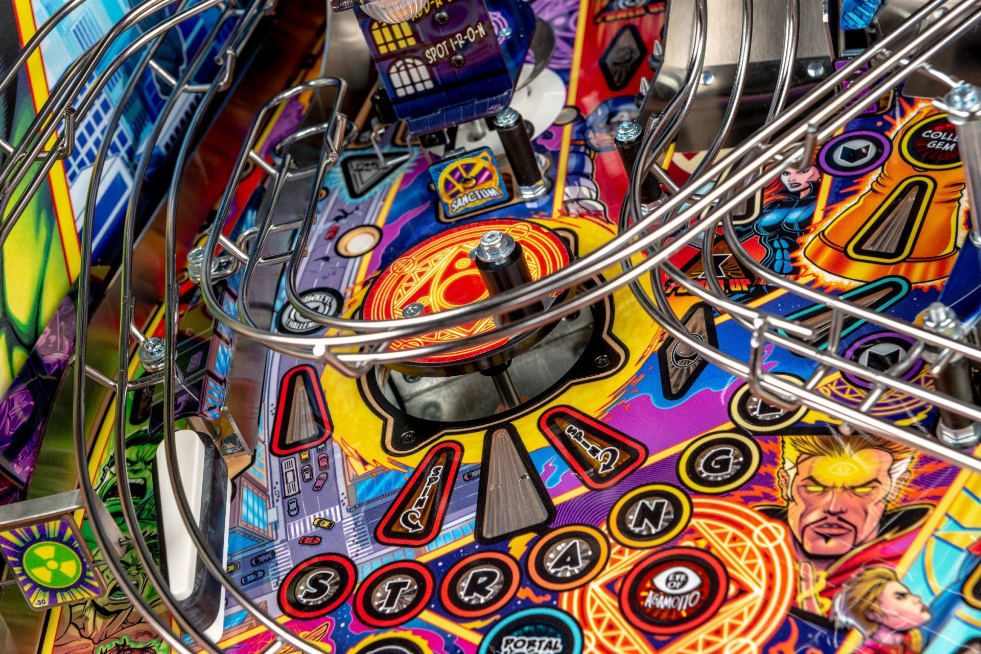 Los modelos Premium y Limited Edition cuentan con una primicia interactiva de disco emergente motorizado Dr. Strange, que transporta pinballs a un portal subterráneo, un metro visible capaz de sostener y poner en escena hasta 3 bolas a través de ventanas de campo de juego personalizadas acentuadas con efectos de iluminación RGB dinámicos. Estos modelos también incluyen un Gauntlet Thanos Infinity esculpido personalizado integrado con gemas de iluminación atmosférica, una rampa de forma de alambre personalizada de gravedad inversa del Capitán Marvel y un up-kicker vertical de Pym Laboratories.