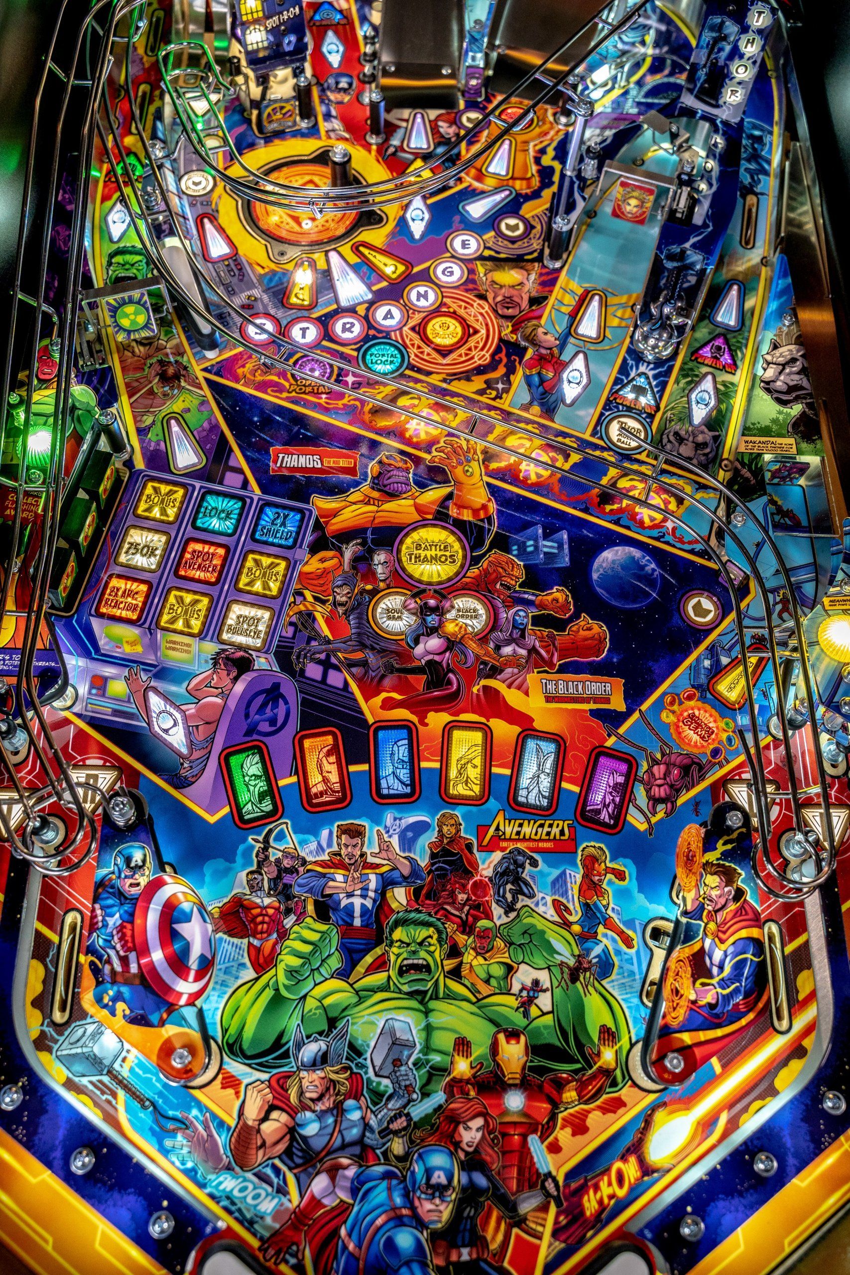 Todos los modelos Pro, Premium y Limited Edition cuentan con un disco de anillo cinético giratorio Dr. Strange interactivo con detección de velocidad de doble dirección, lo que ayuda a los jugadores en su viaje a abrir portales e iniciar misiones infinity gem. Todos los modelos cuentan con una rampa de bloqueo magnético avengers tower que desafía la gravedad con vari-target gravitacional y retención de imán, capturando pinballs en el aire mientras los jugadores desbloquean Iron Man Multiball. Además de ilustraciones distintas dibujadas a mano, todos los modelos cuentan con un banco de caídas de 3 objetivos de la cuadrícula de bingo de la computadora De los Vengadores, una bola cautiva de Thor, un objetivo giratorio de Hulk, rampas de forma de alambre intrincadas personalizadas y 3 aletas de tamaño completo.