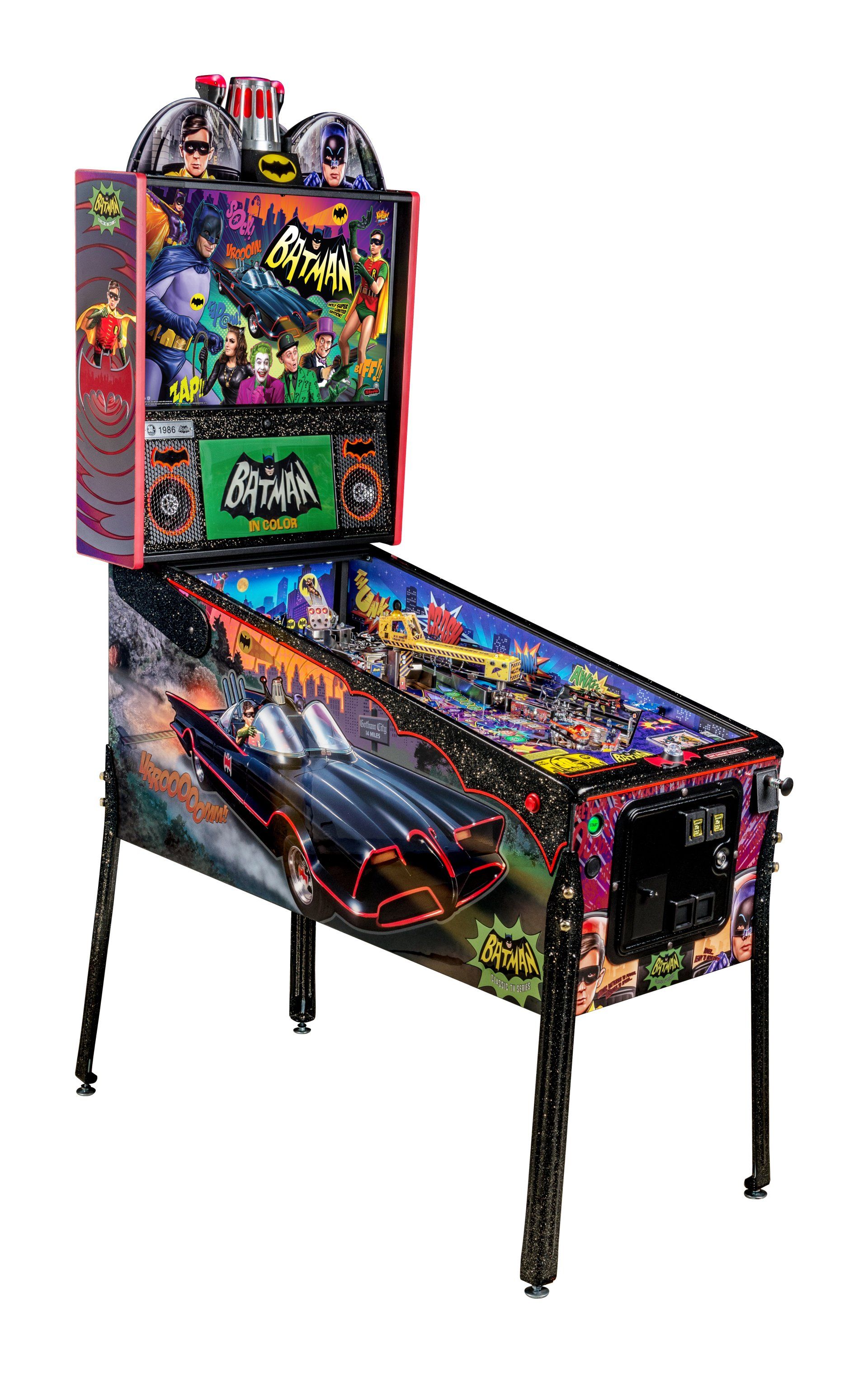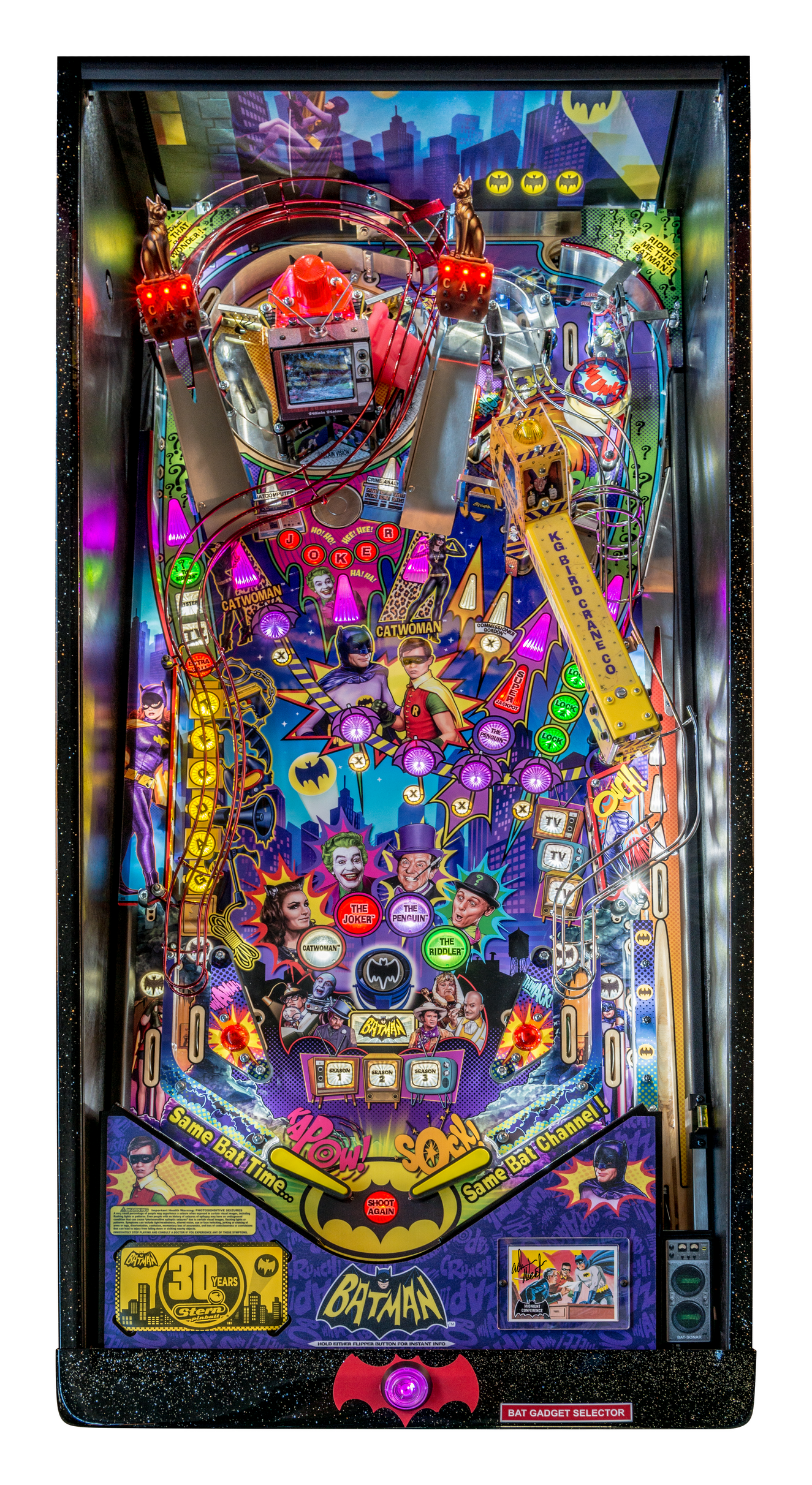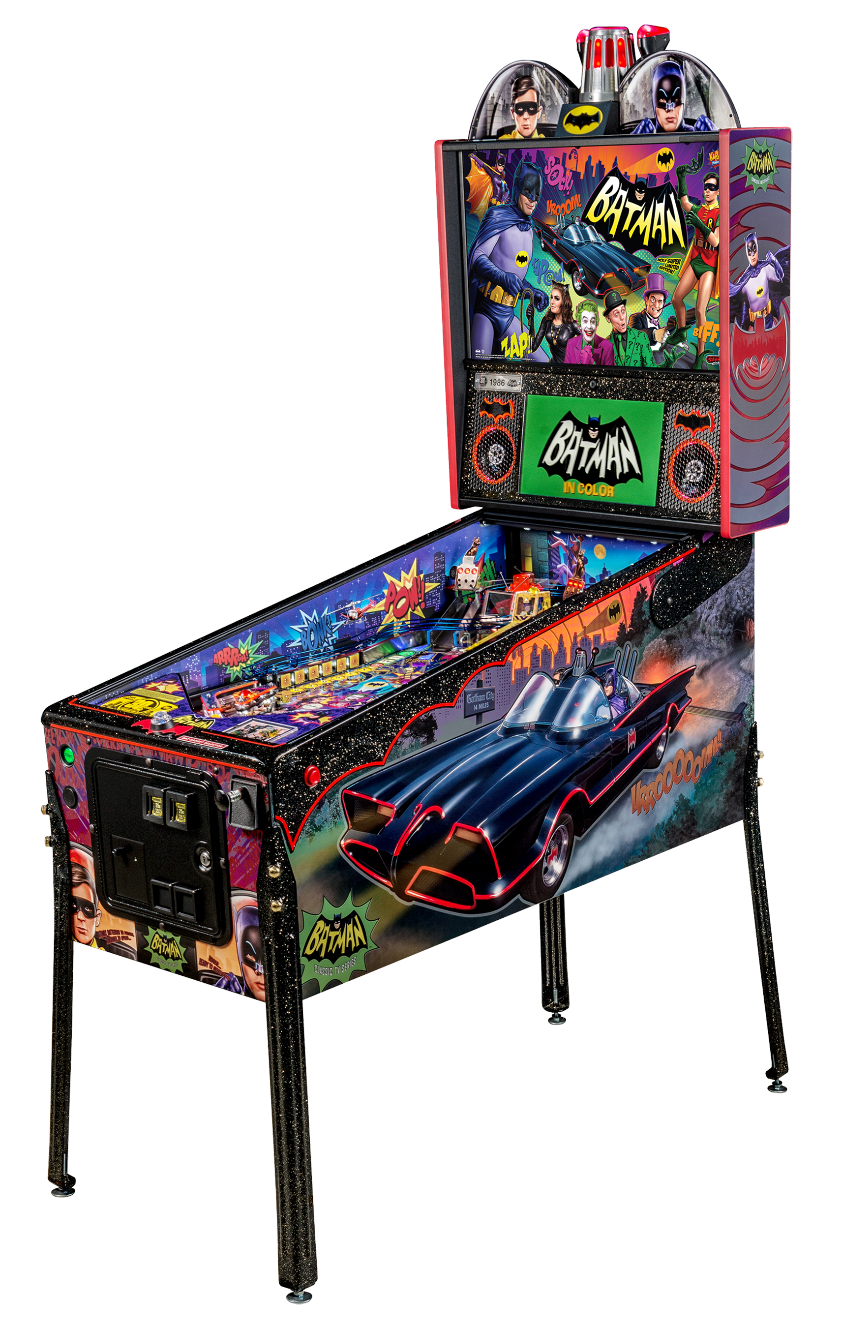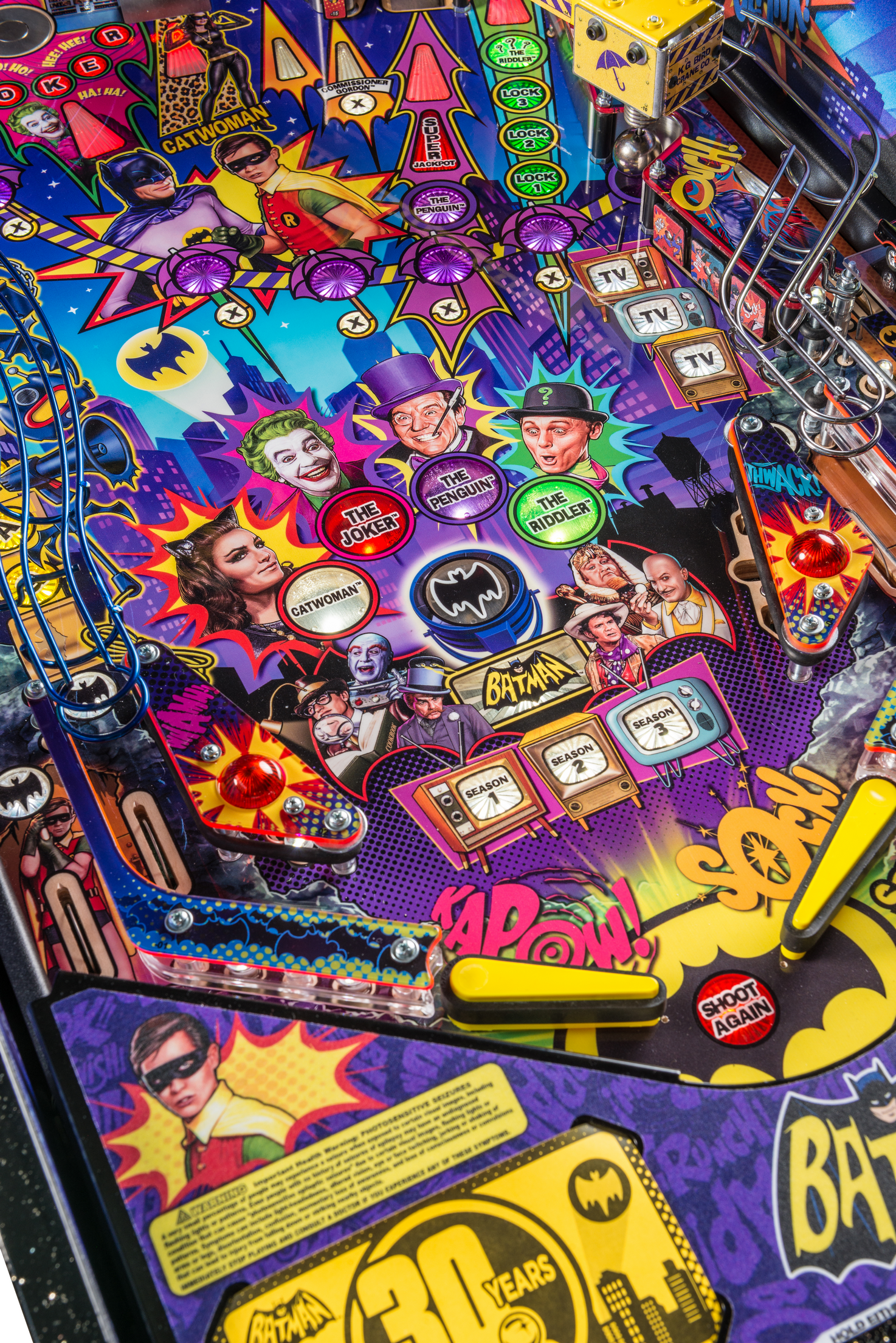 Stern Pinball celebra su trigésimo año en el negocio y el 50 aniversario de la icónica serie de televisión estadounidense con una máquina de pinball Anniversary Edition con el mundialmente famoso "Dynamic Duo" de Batman y Robin. El juego sumergirá a los jugadores en una diversión campy y una acción deslumbrante a medida que Dynamic Duo combata el crimen en ayuda de la policía de Gotham City. A lo largo del juego, Batman y Robin trabajan para deducir pistas y descubrir tramas de súper villanos en un esfuerzo por frustrar los planes malvados y capturar a los malos. Los jugadores son guiados a través del juego por las voces de nada menos que Batman y Robin, Adam West y Burt Ward.