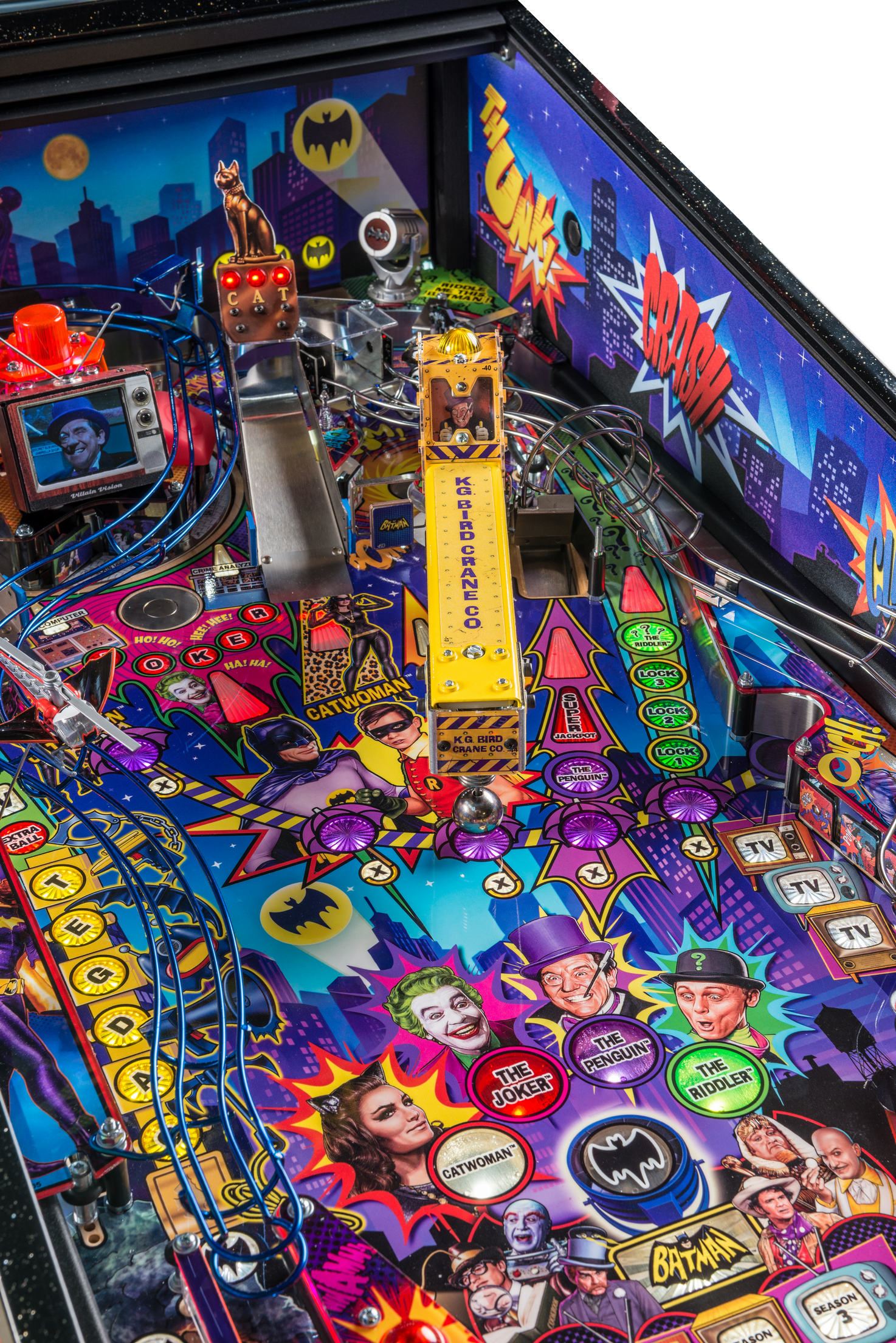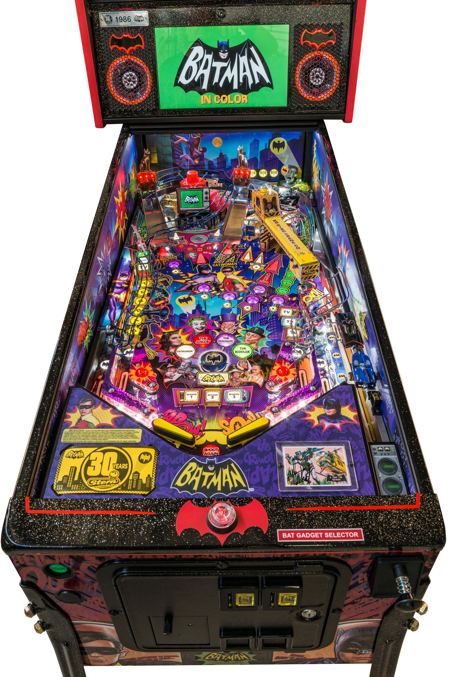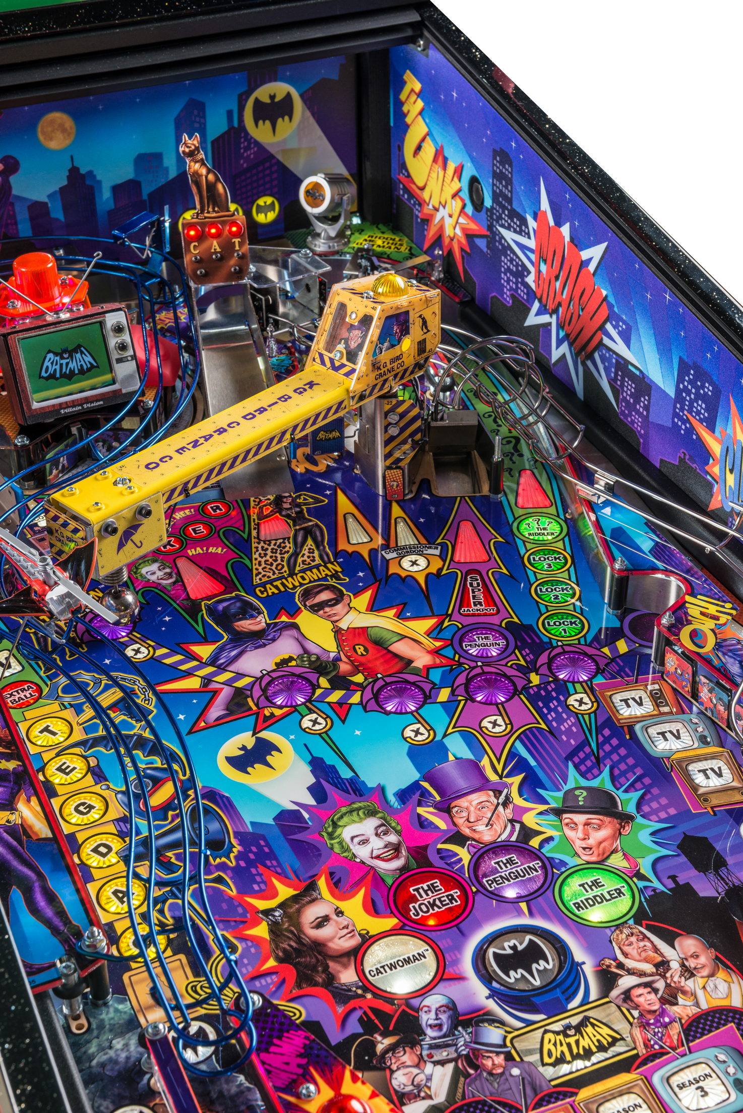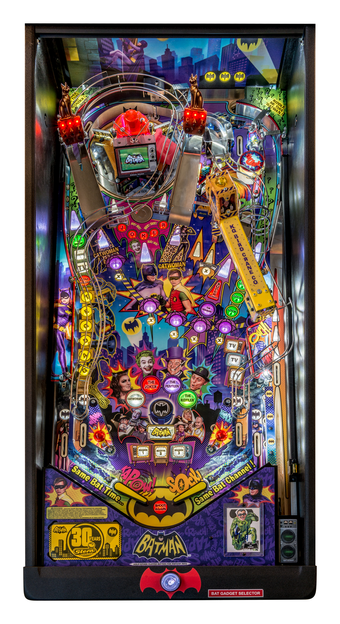 Stern Pinball celebra su trigésimo año en el negocio y el 50 aniversario de la icónica serie de televisión estadounidense con una máquina de pinball Anniversary Edition con el mundialmente famoso "Dynamic Duo" de Batman y Robin. El juego sumergirá a los jugadores en una diversión campy y una acción deslumbrante a medida que Dynamic Duo combata el crimen en ayuda de la policía de Gotham City. A lo largo del juego, Batman y Robin trabajan para deducir pistas y descubrir tramas de súper villanos en un esfuerzo por frustrar los planes malvados y capturar a los malos. Los jugadores son guiados a través del juego por las voces de nada menos que Batman y Robin, Adam West y Burt Ward.