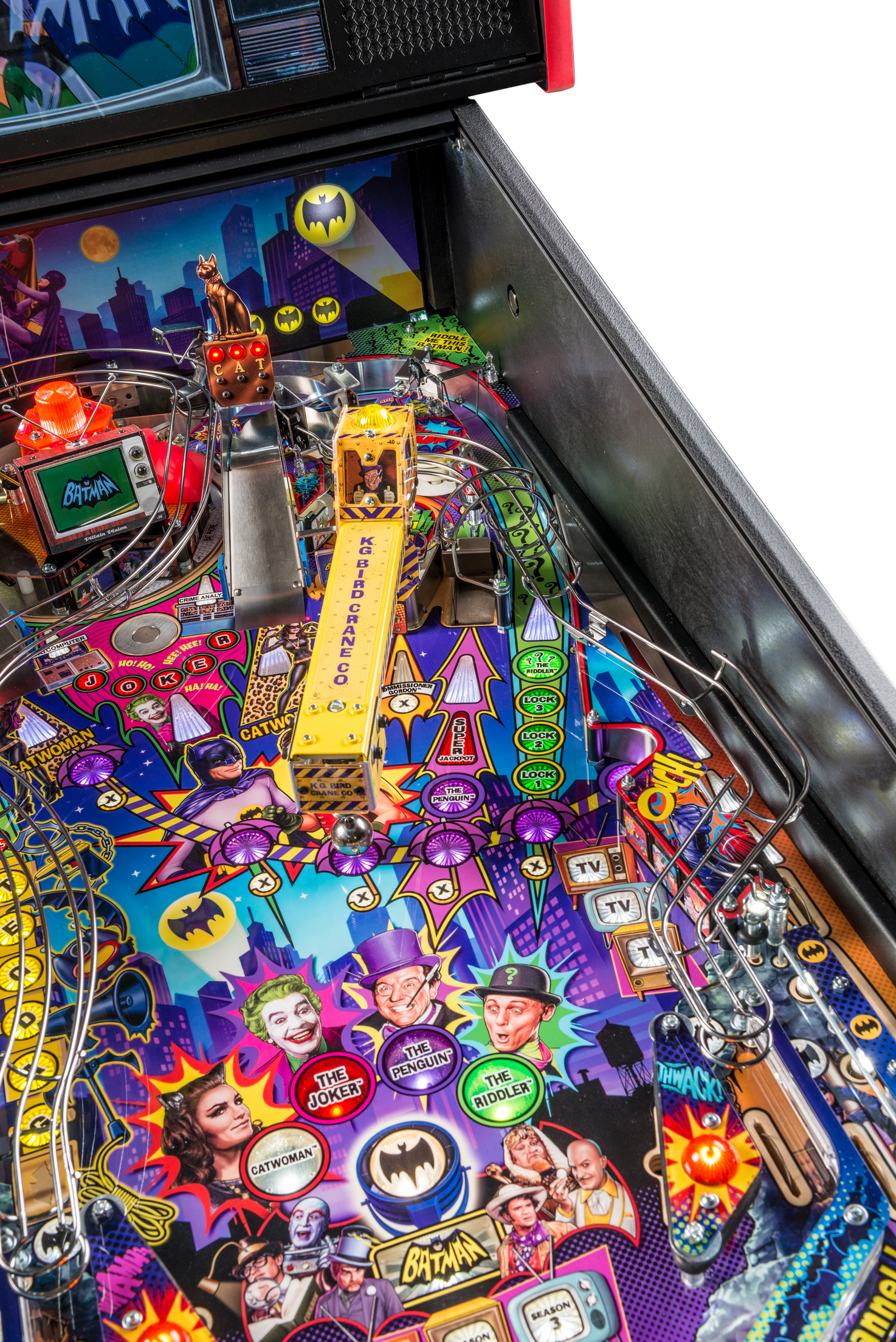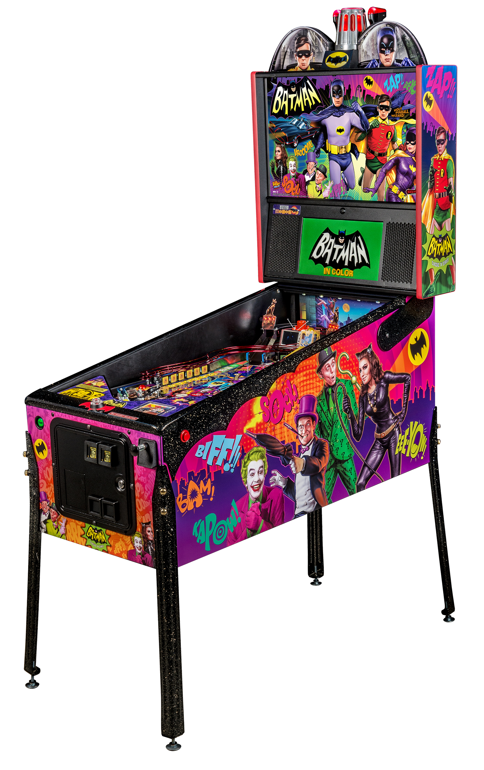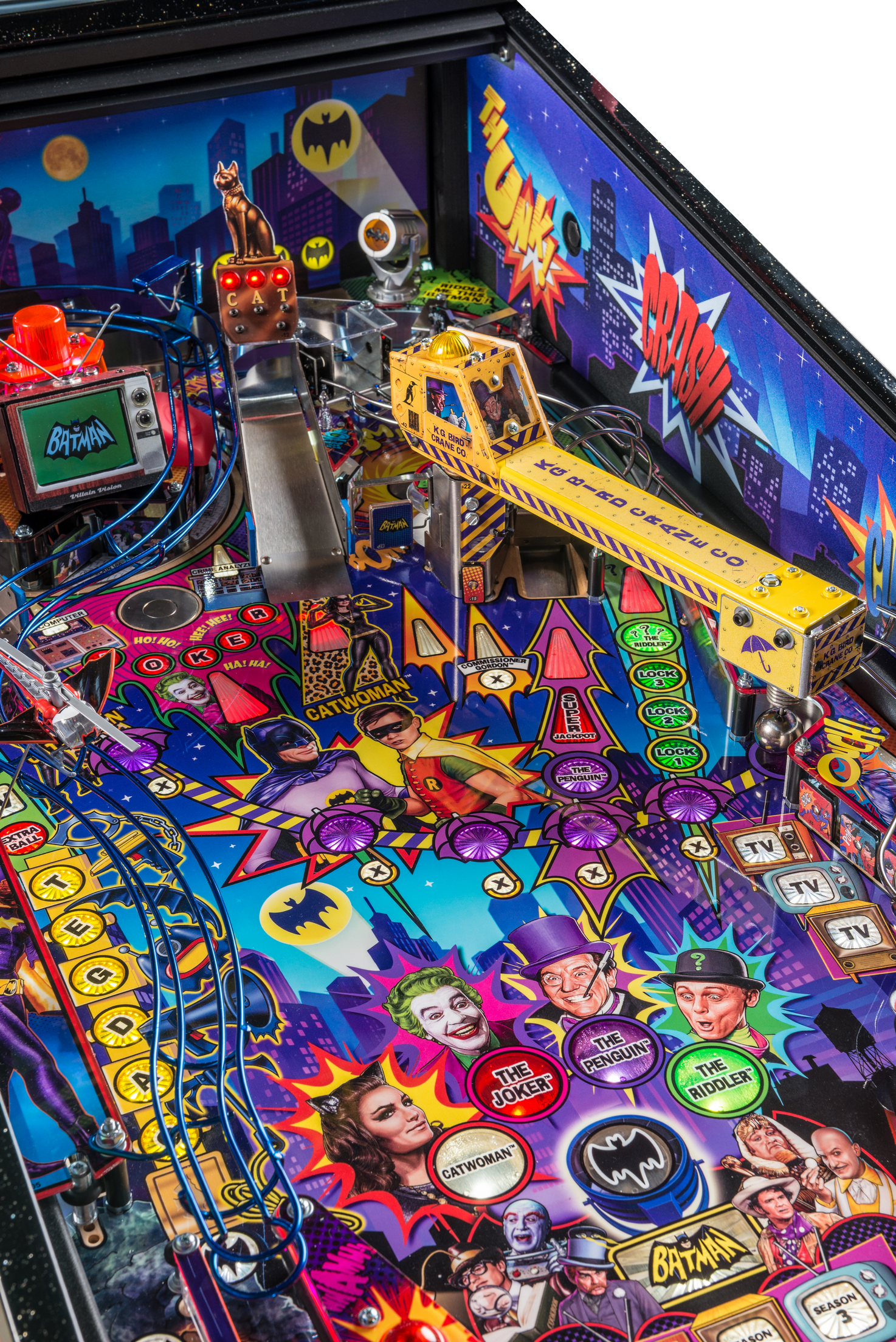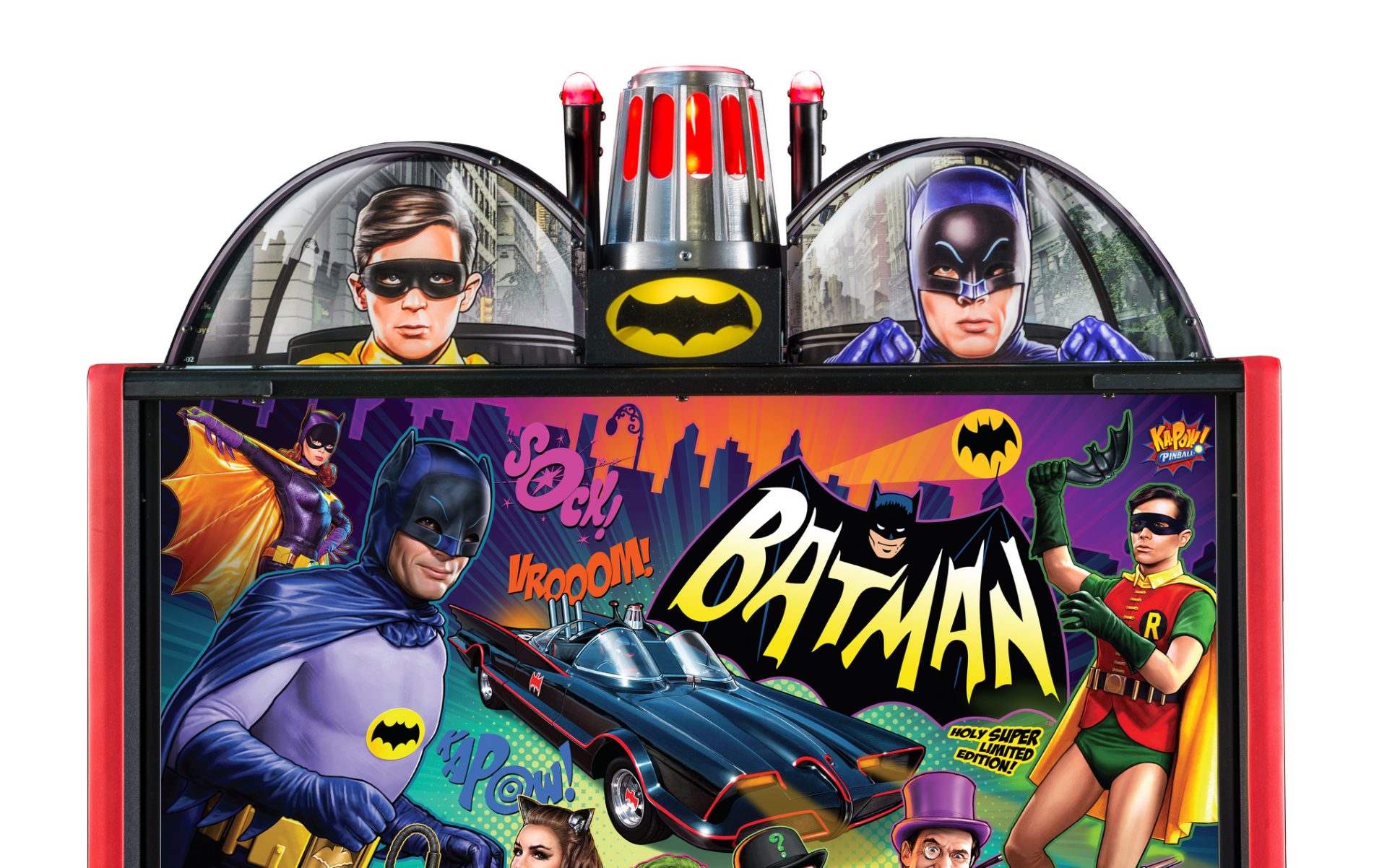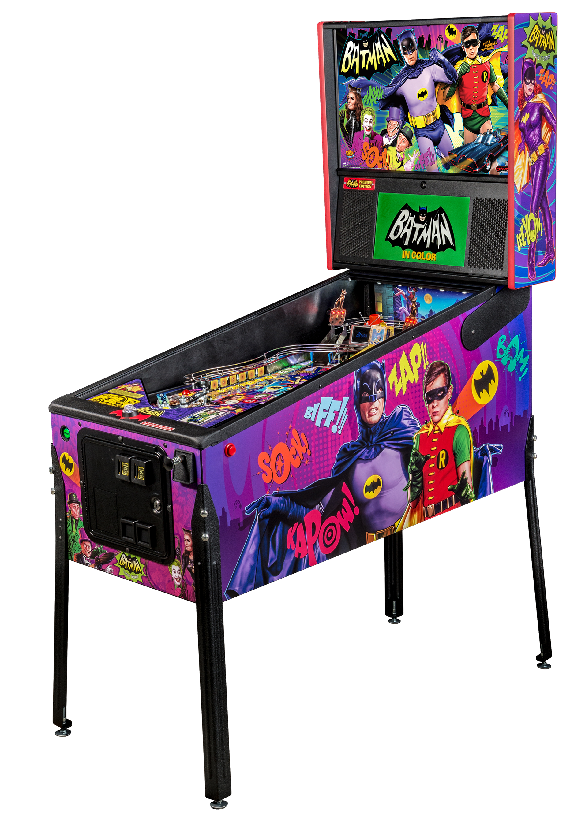 Stern Pinball celebra su trigésimo año en el negocio y el 50 aniversario de la icónica serie de televisión estadounidense con una máquina de pinball Anniversary Edition con el mundialmente famoso "Dynamic Duo" de Batman y Robin. El juego sumergirá a los jugadores en una diversión campy y una acción deslumbrante a medida que Dynamic Duo combata el crimen en ayuda de la policía de Gotham City. A lo largo del juego, Batman y Robin trabajan para deducir pistas y descubrir tramas de súper villanos en un esfuerzo por frustrar los planes malvados y capturar a los malos. Los jugadores son guiados a través del juego por las voces de nada menos que Batman y Robin, Adam West y Burt Ward.