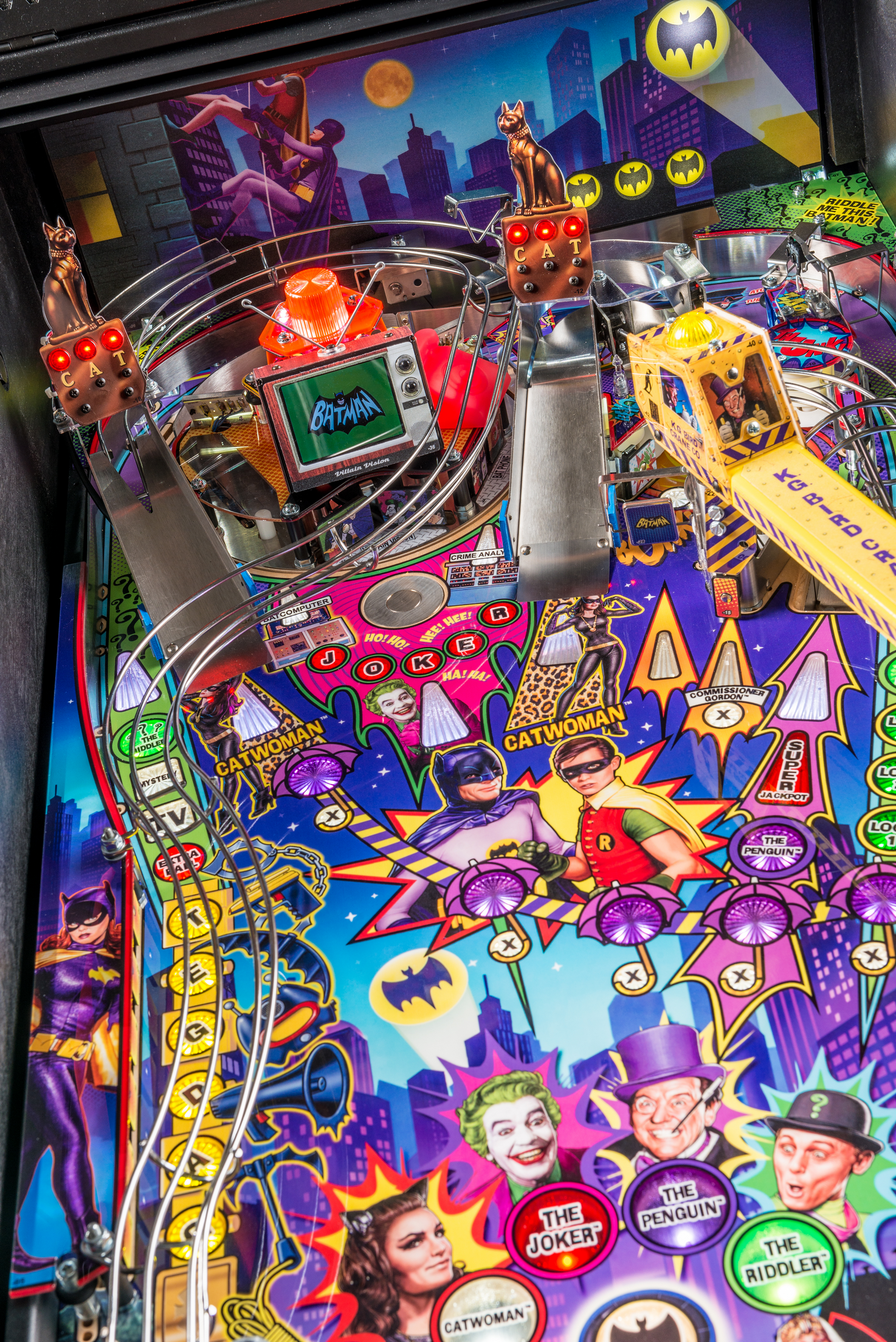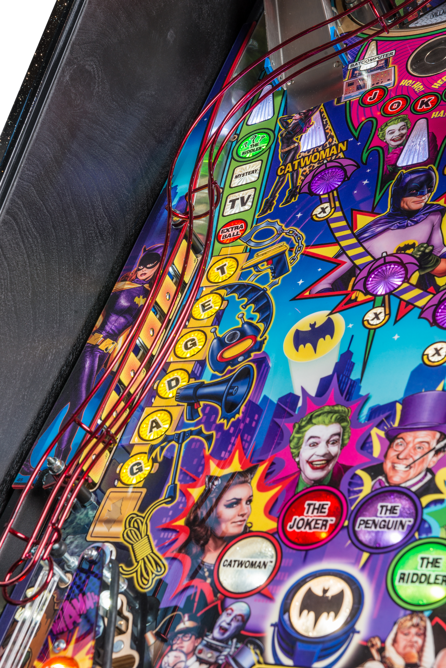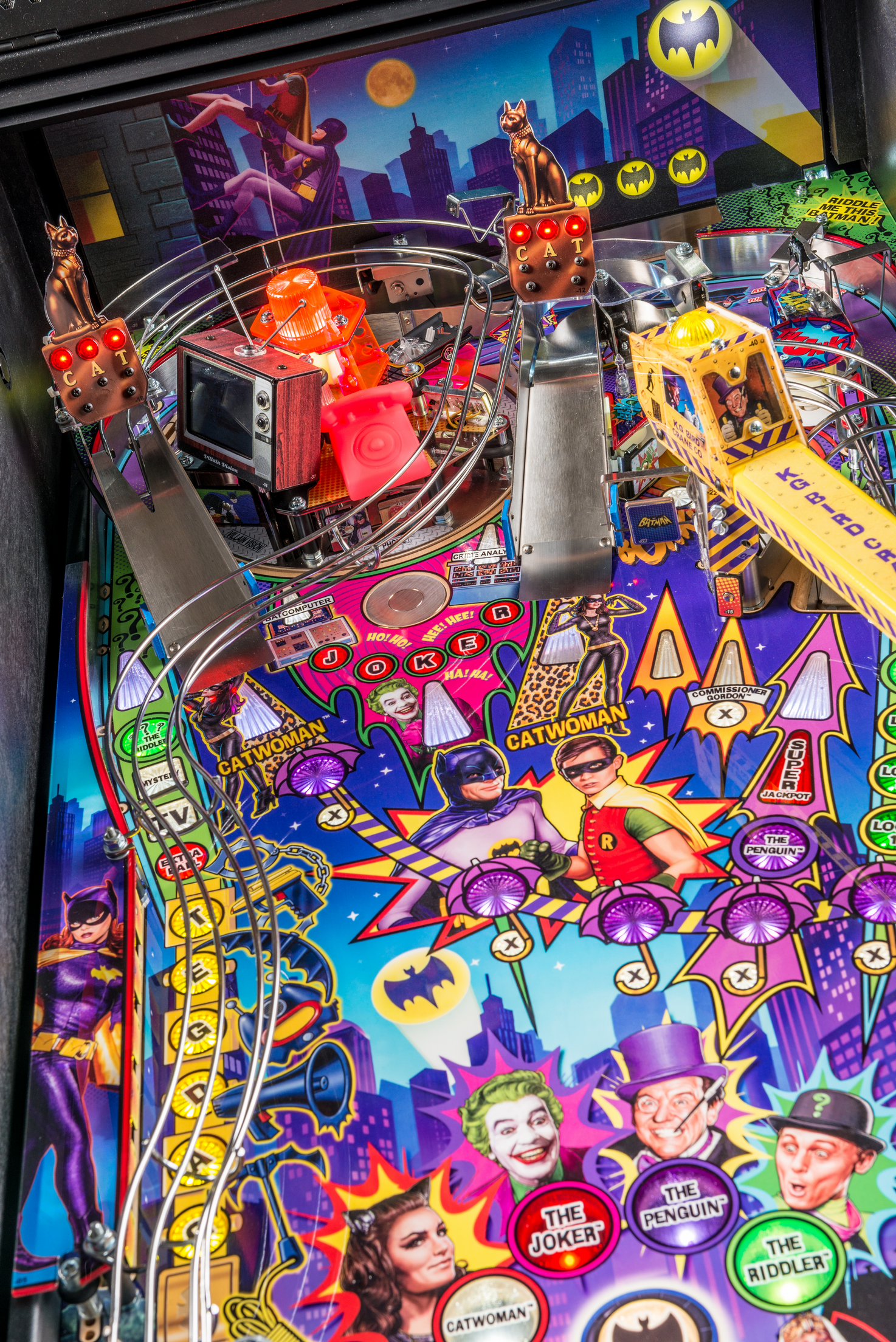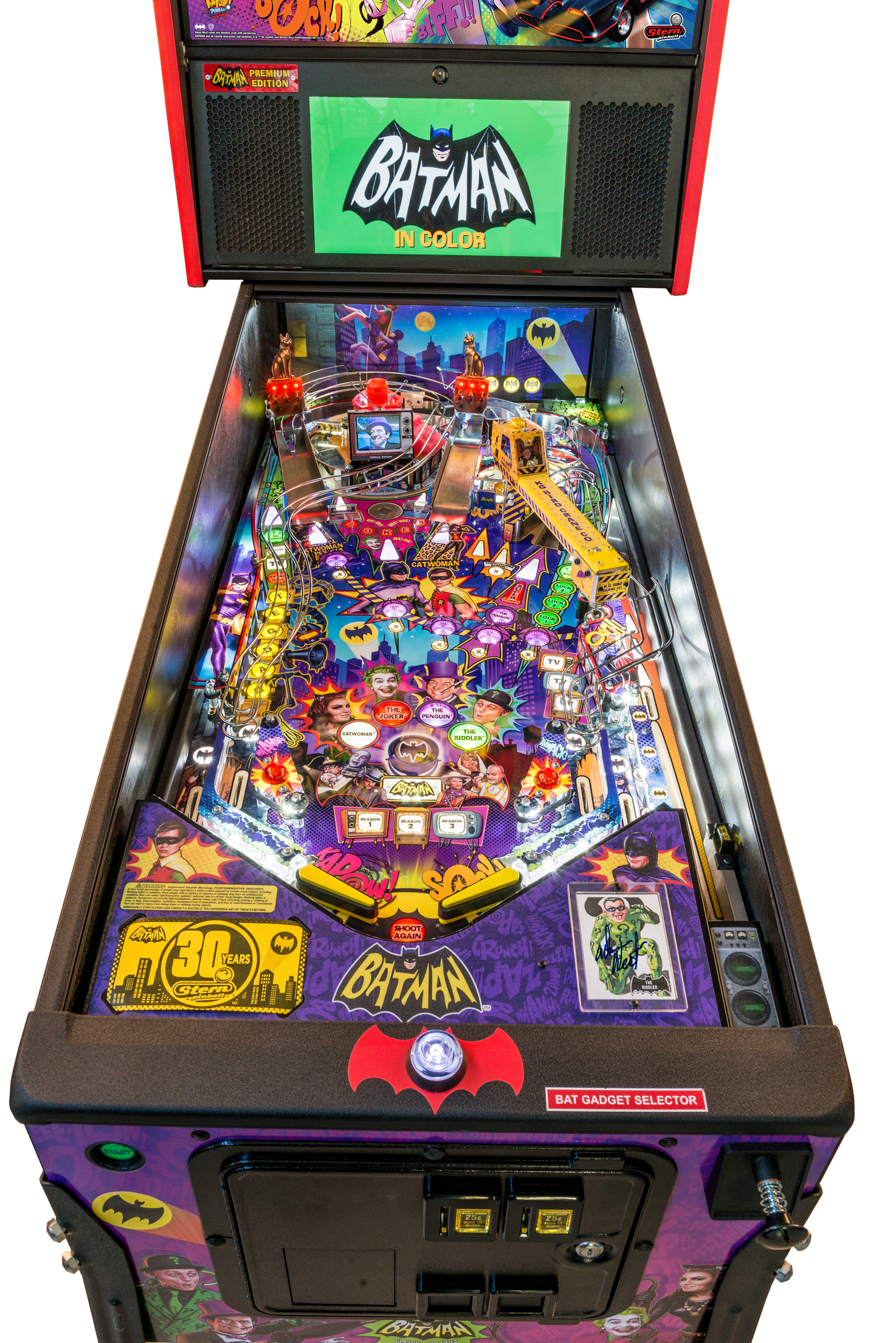 Stern Pinball celebra su trigésimo año en el negocio y el 50 aniversario de la icónica serie de televisión estadounidense con una máquina de pinball Anniversary Edition con el mundialmente famoso "Dynamic Duo" de Batman y Robin. El juego sumergirá a los jugadores en una diversión campy y una acción deslumbrante a medida que Dynamic Duo combata el crimen en ayuda de la policía de Gotham City. A lo largo del juego, Batman y Robin trabajan para deducir pistas y descubrir tramas de súper villanos en un esfuerzo por frustrar los planes malvados y capturar a los malos. Los jugadores son guiados a través del juego por las voces de nada menos que Batman y Robin, Adam West y Burt Ward.