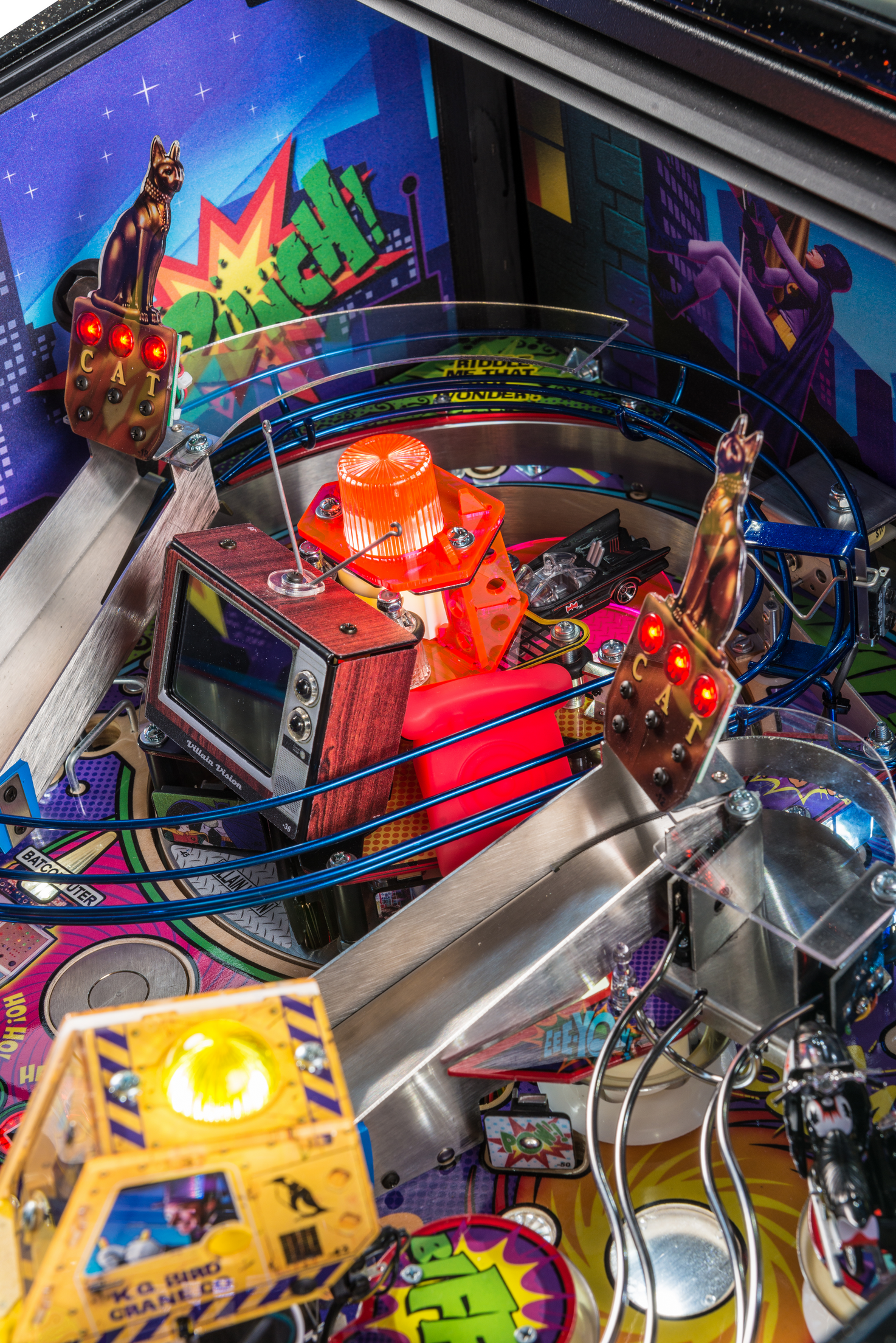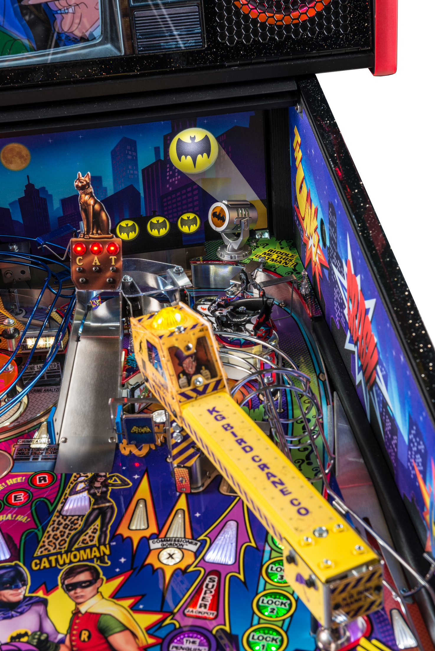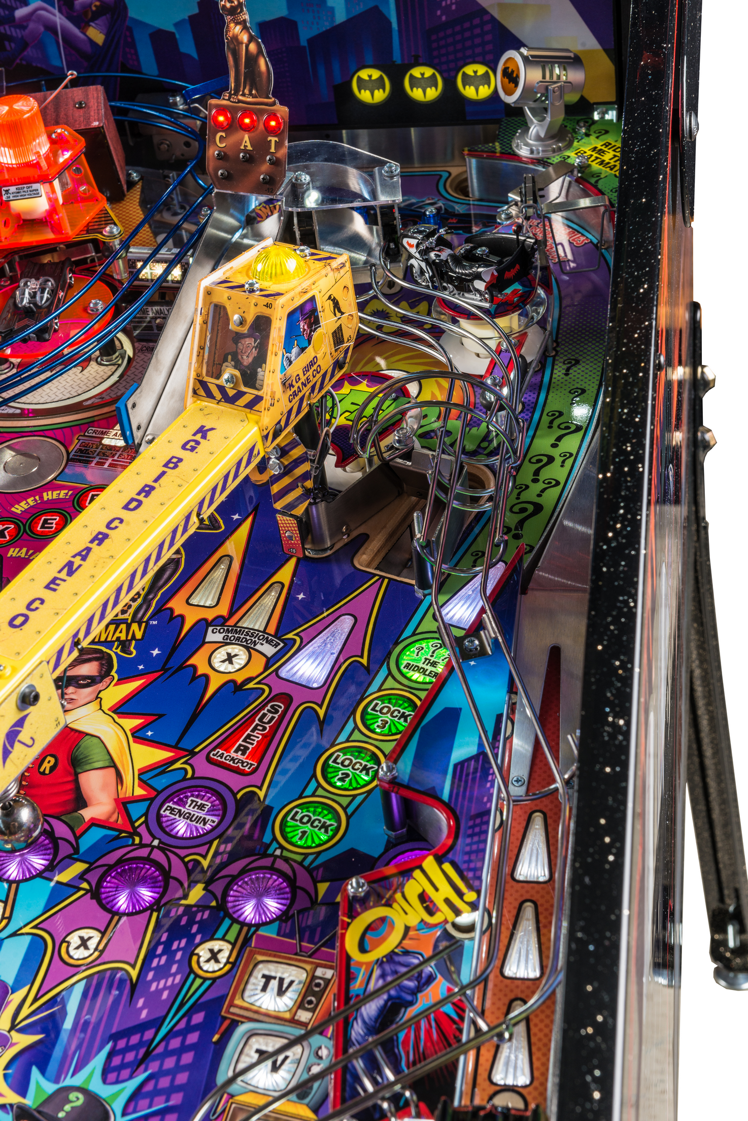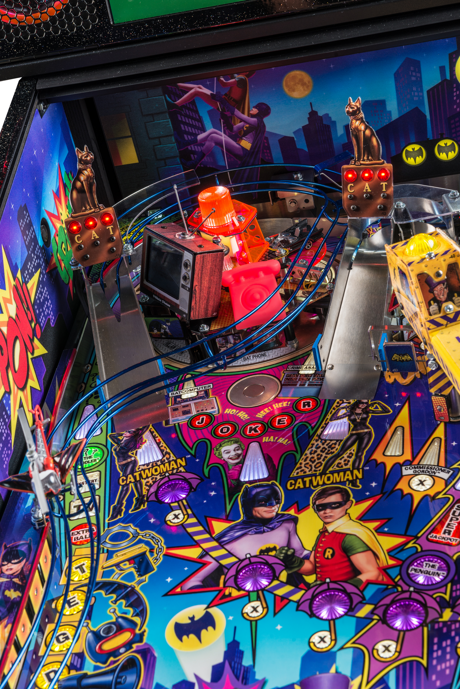 Stern Pinball celebra su trigésimo año en el negocio y el 50 aniversario de la icónica serie de televisión estadounidense con una máquina de pinball Anniversary Edition con el mundialmente famoso "Dynamic Duo" de Batman y Robin. El juego sumergirá a los jugadores en una diversión campy y una acción deslumbrante a medida que Dynamic Duo combata el crimen en ayuda de la policía de Gotham City. A lo largo del juego, Batman y Robin trabajan para deducir pistas y descubrir tramas de súper villanos en un esfuerzo por frustrar los planes malvados y capturar a los malos. Los jugadores son guiados a través del juego por las voces de nada menos que Batman y Robin, Adam West y Burt Ward.