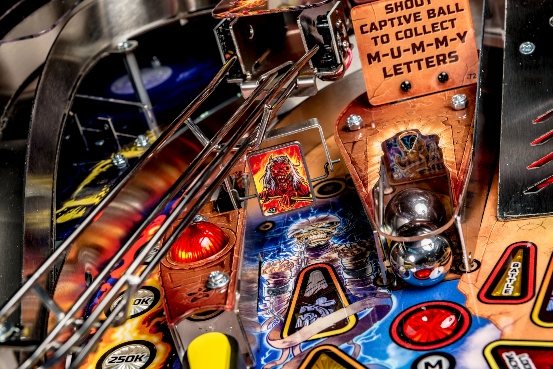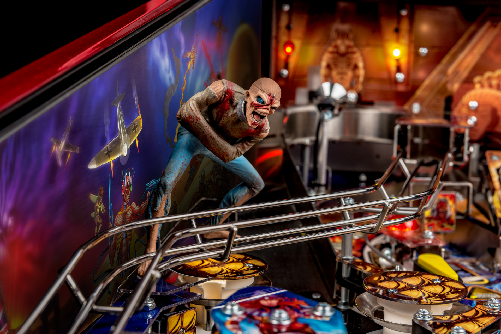 Todos los modelos incluyen doce canciones de Iron Maiden con jugadores que irán a la batalla como Eddie con la ayuda de cuatro aletas, dos hilanderos, un conjunto de objetivos de caída de 3 bancos, rampas de metal y forma de alambre, un mecanismo de bola cautiva, un mecanismo de bloqueo de doble poste , y un objetivo central de tiro al blanco.