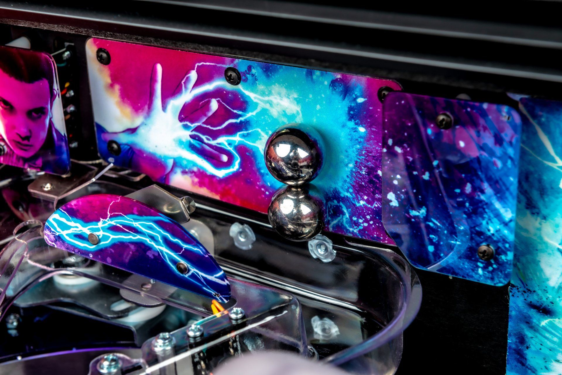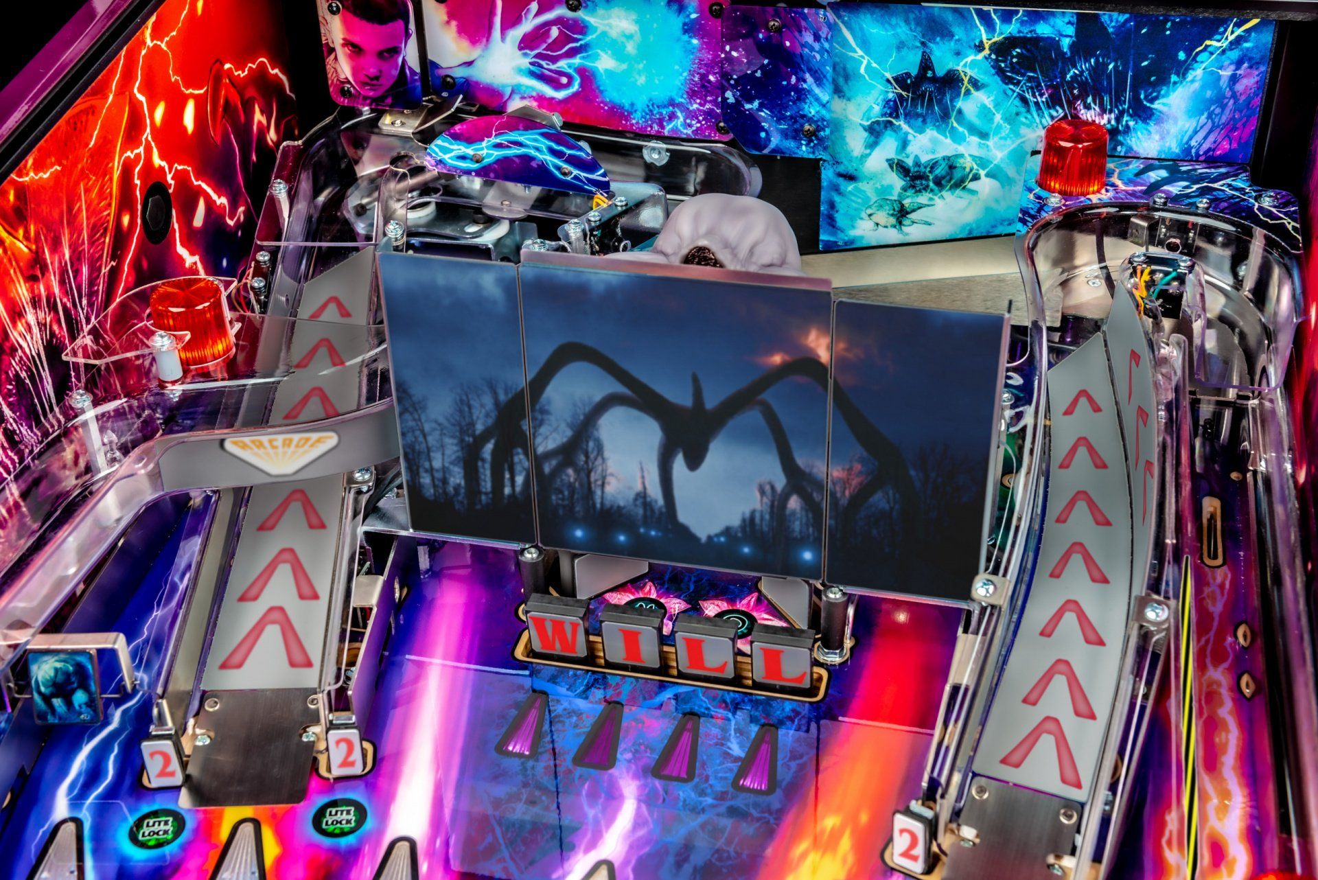 Los modelos Premium y Limited Edition cuentan con un primer proyector de video que muestra imágenes y animaciones directamente en el campo de juego, creando interacciones dramáticas con la acción del juego. El centro del campo de juego presenta una rampa única que funciona como una pantalla y lleva al jugador a una batalla directa con el Demogorgon. Estos modelos también cuentan con una nueva cerradura de bola magnética "telequinética" de Eleven.