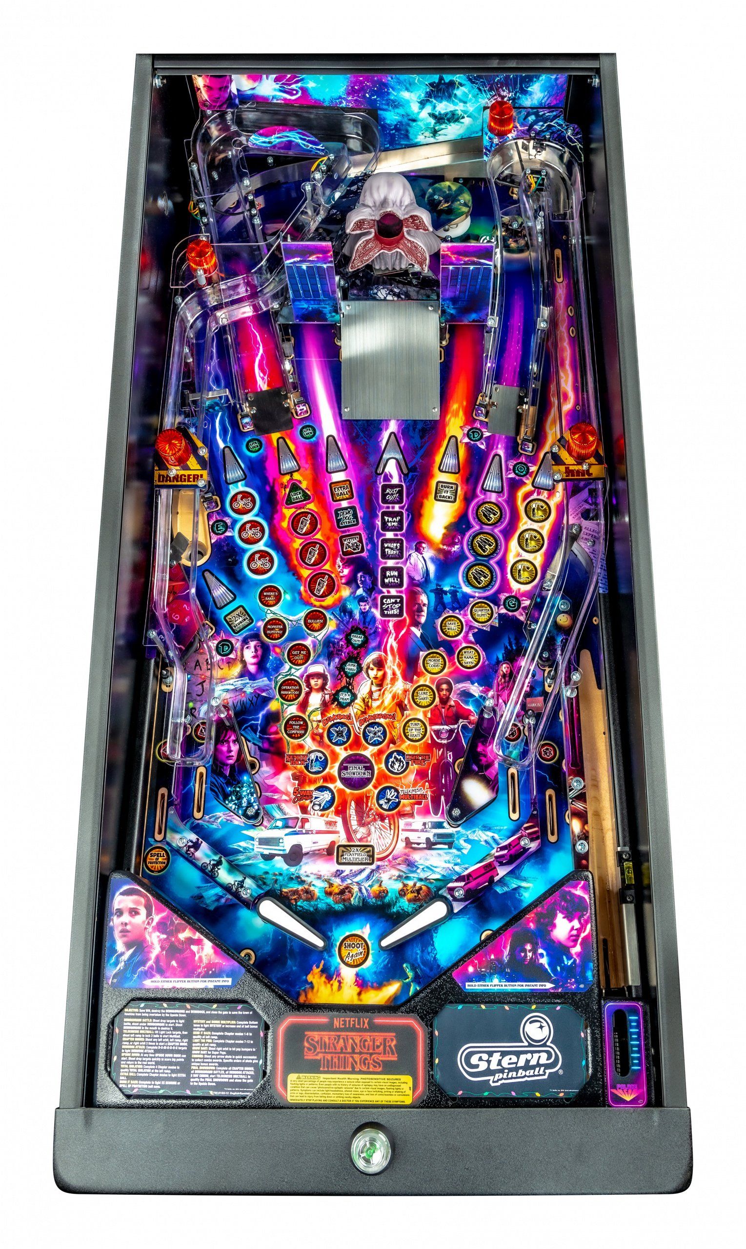 Experimente las terroríficas fuerzas en Hawkins, Indiana, que ponen a este pequeño pueblo "al revés" con elementos sobrenaturales, avistamientos extraños y secretos del gobierno. Las máquinas de pinball de Stranger Things sumergirán a los jugadores en una búsqueda para desentrañar los misterios extraordinarios y los experimentos secretos del gobierno que tienen lugar en el Laboratorio Nacional de Hawkins. El juego se centra en desbloquear los significados ocultos de los eventos sobrenaturales que ocurren en la ciudad y sus alrededores, incluida la aparición de una niña conocida como "Eleven" con habilidades telequinéticas. La pelota es salvaje mientras Mike, Lucas, Dustin, Will, Joyce y el jefe de policía Jim Hopper ayudan a Once a cerrar la puerta dimensional.
