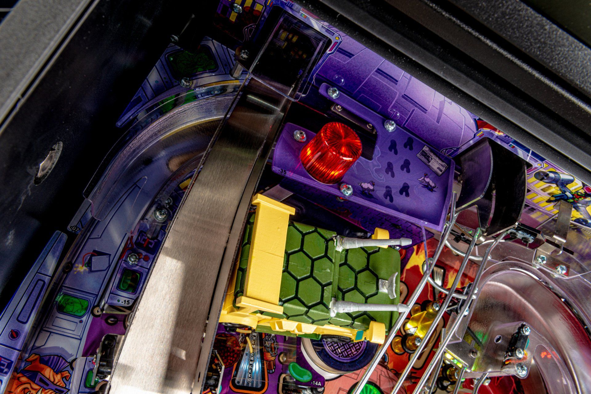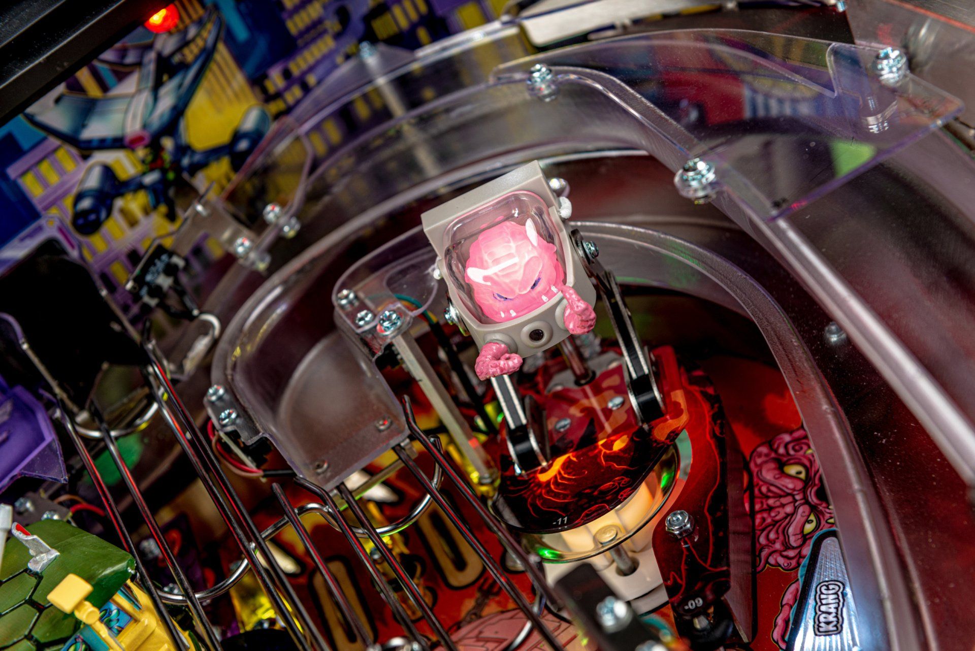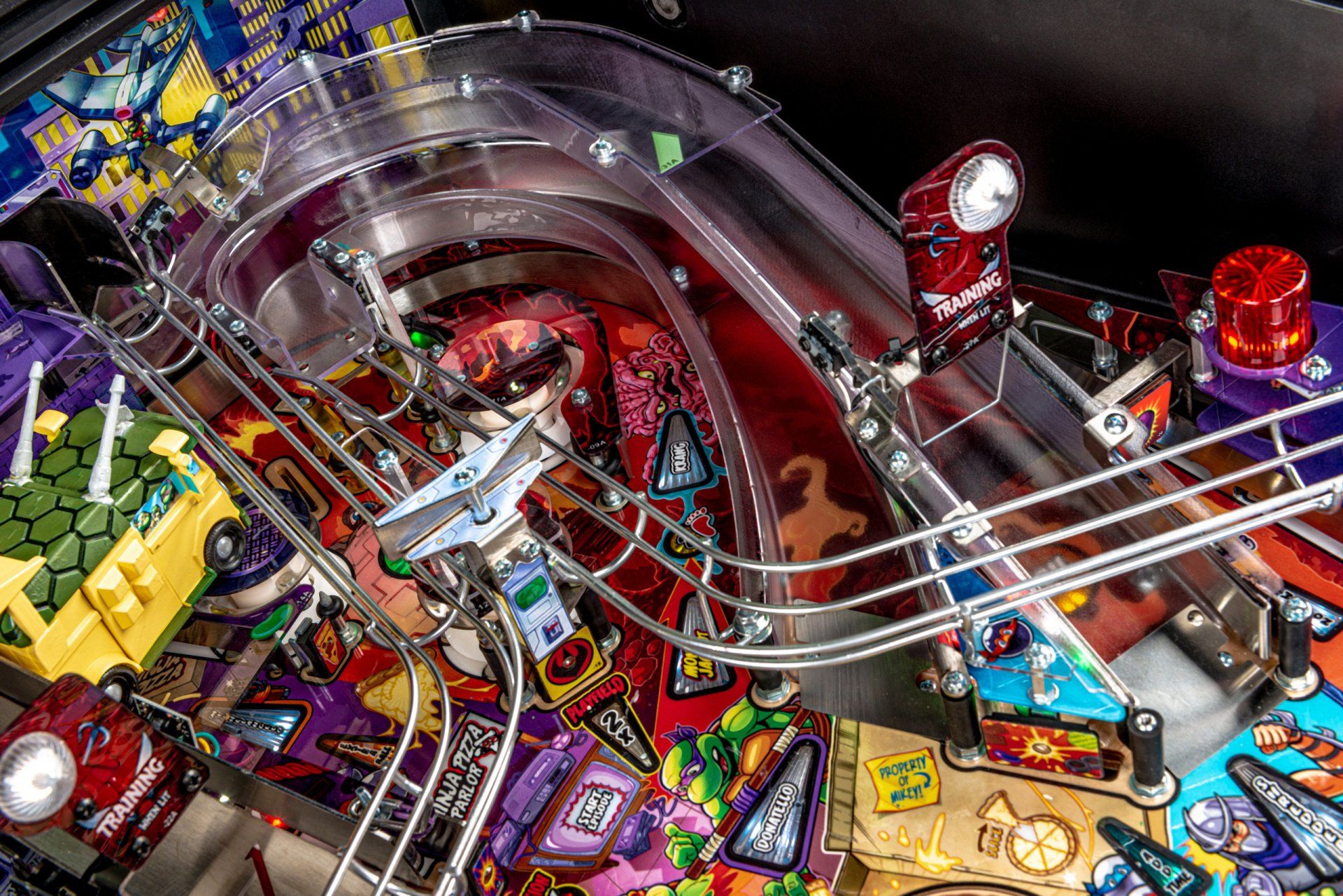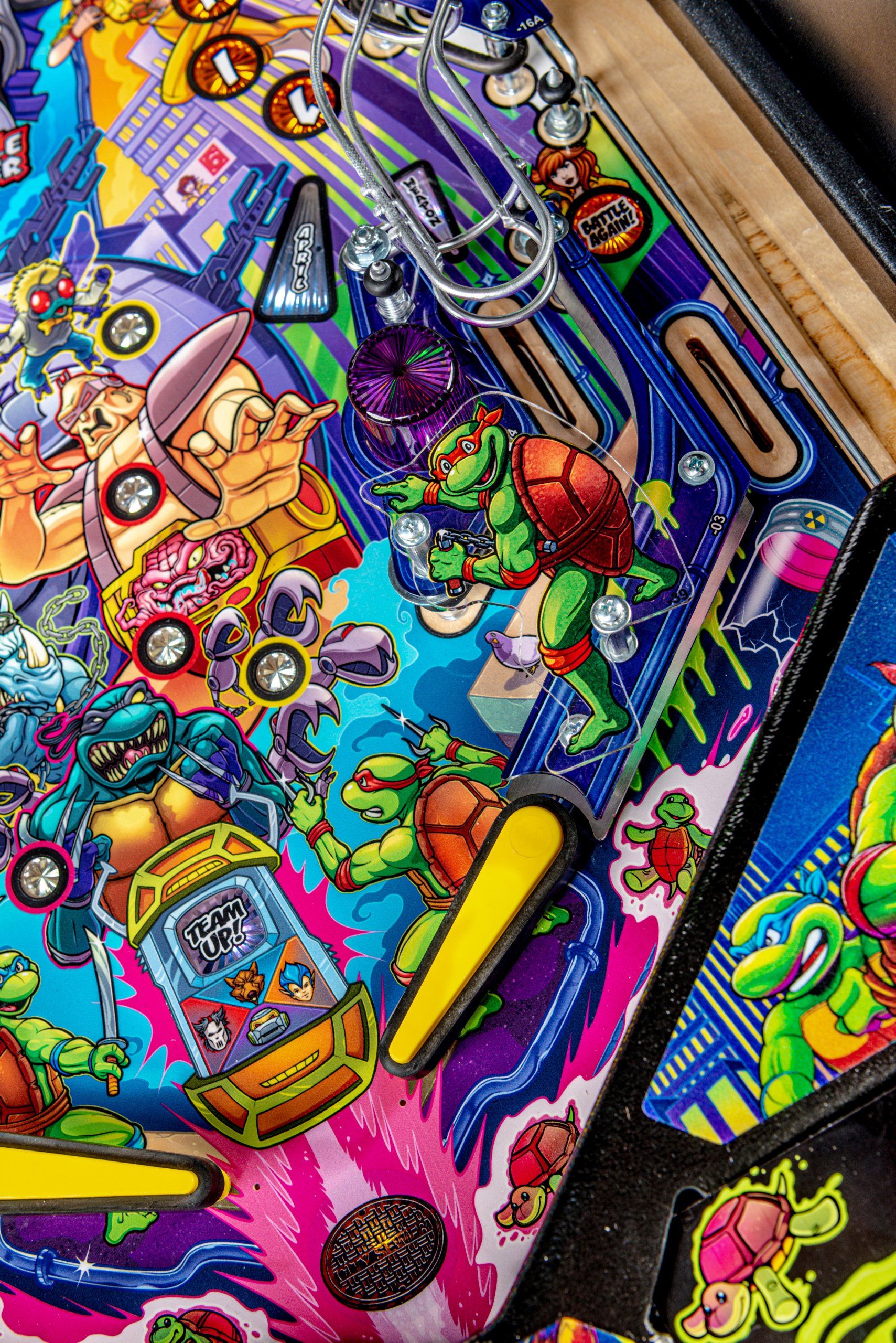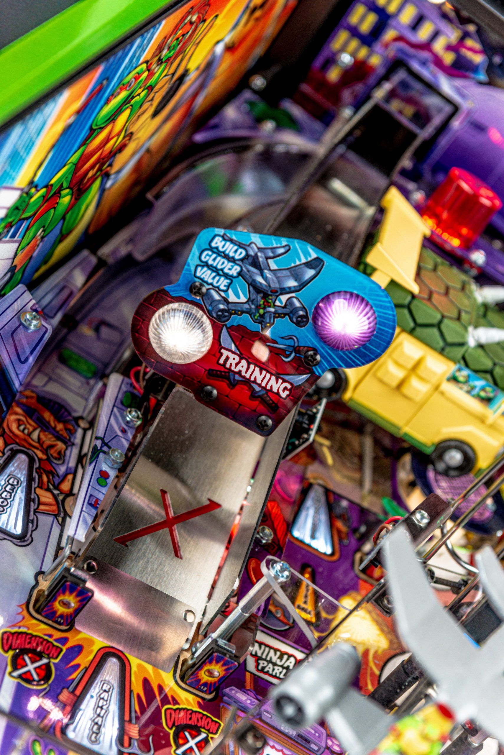 Los modelos Premium y Limited Edition cuentan con una furgoneta Turtles esculpida interactiva personalizada, equipada para bloquear hasta 4 pelotas en el interior con una puerta lateral de apertura / cierre mecánica, lista para desatar estragos multiball sobre los jugadores. Estos modelos también cuentan con el icónico Glider TMNT, un conjunto de desviador personalizado y esculpido controlado por el jugador estacionado sobre ambas rampas, lo que les da a los jugadores la capacidad de controlar y transportar la pelota al flipper de su elección. Además, un juguete Krang mecánico esculpido a medida se cierne sobre los parachoques pop, saltando hacia arriba y hacia abajo mientras se burla de los jugadores durante toda la acción del juego.