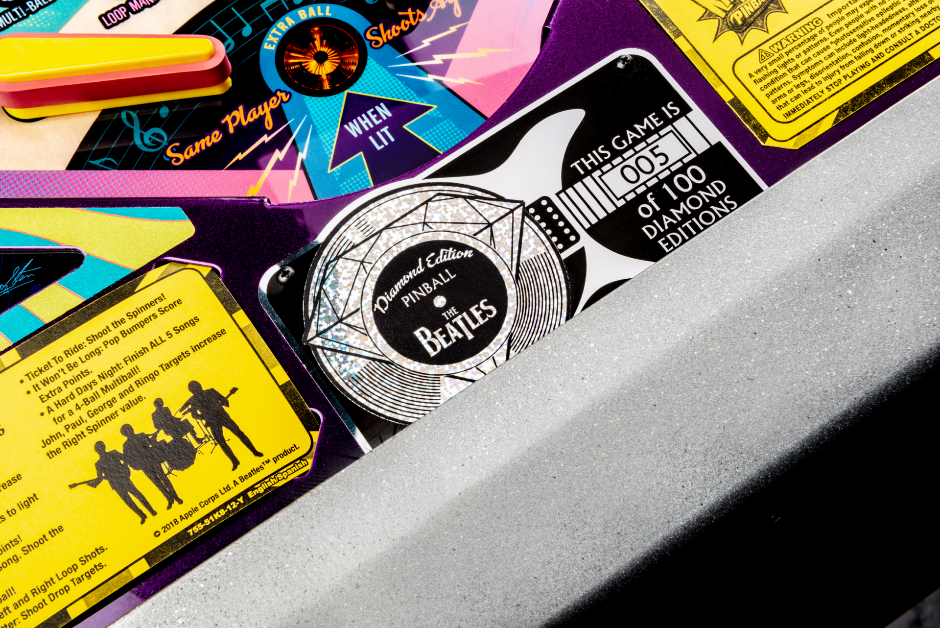 El campo de juego de temática retro presenta cuatro aletas, once objetivos de caída, ocho objetivos de pie, múltiples disparos de habilidad, dos opto-spinners, un imán para atrapar bolas y un disco de grabación magnético giratorio en el centro del campo de juego. Los jugadores, amigos y familiares disfrutarán de animaciones de pantalla completa, así como puntuación de carrete simulada en la pantalla de video de alta definición del juego.
