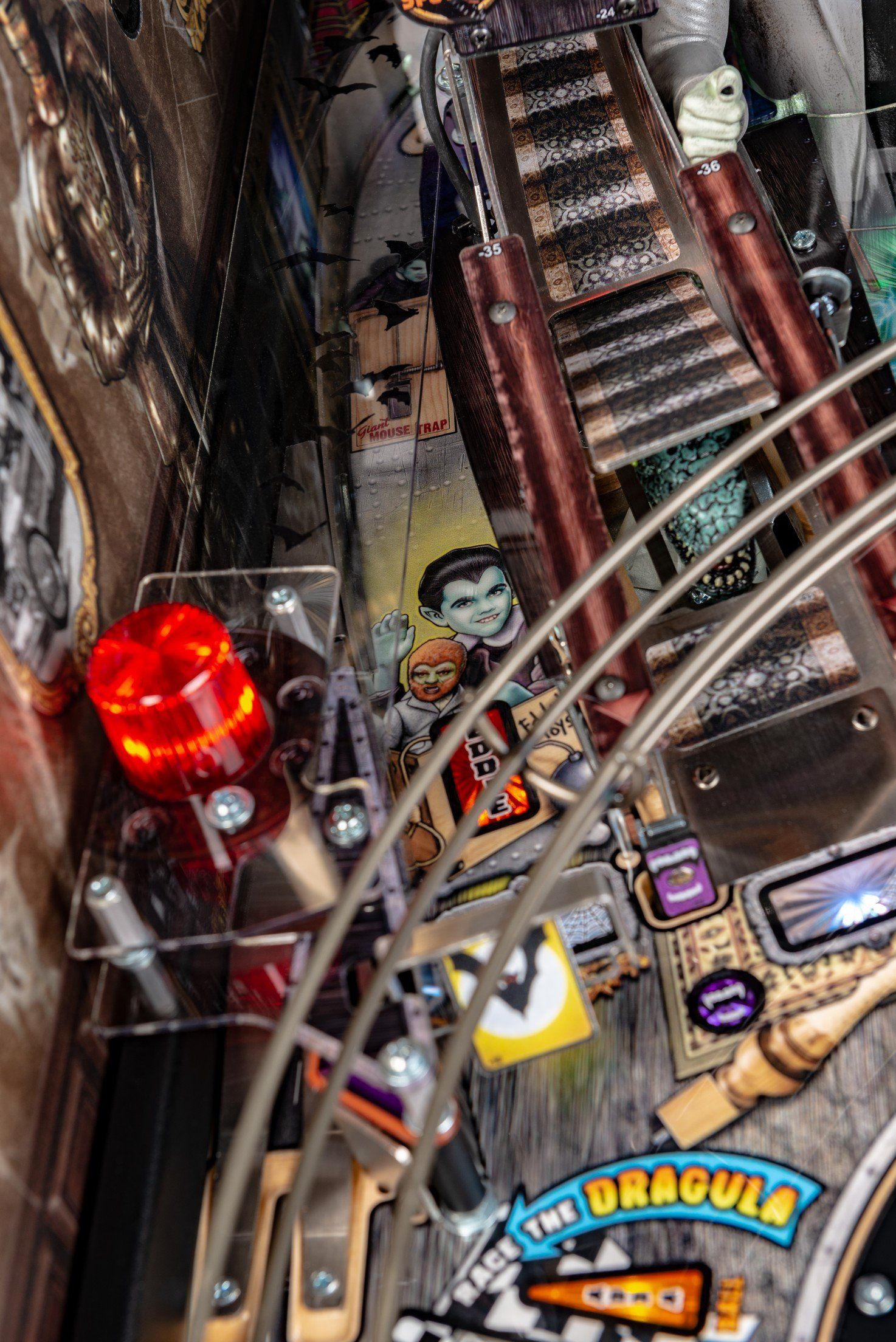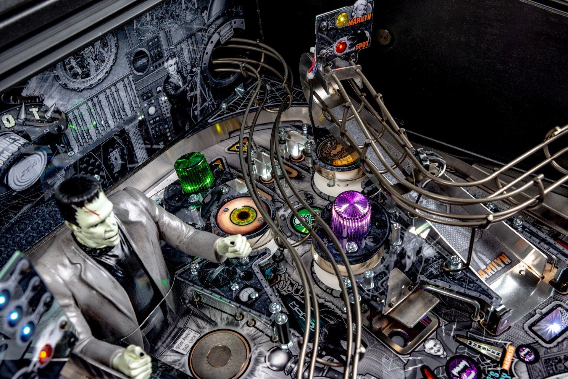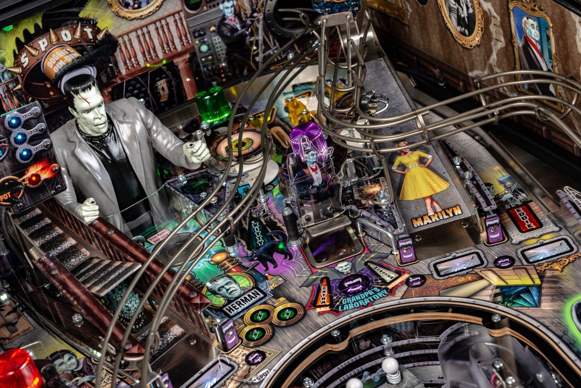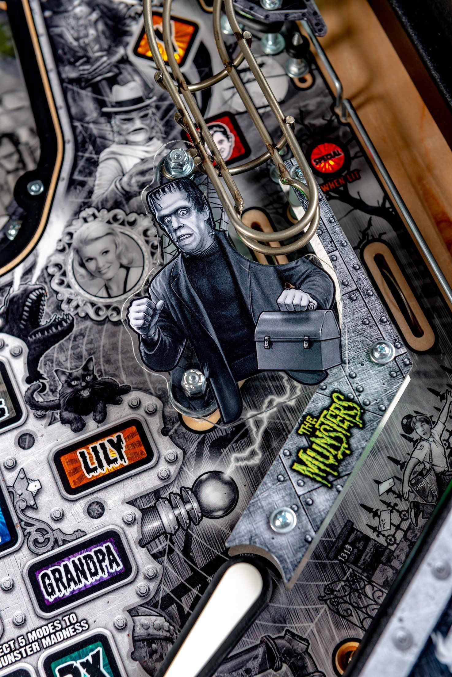 Los modelos The Munsters Pro, Premium y Limited Edition de Stern presentan un arte impresionante y distintivo dibujado a mano. Cada juego cuenta con un juguete Herman bash esculpido personalizado con captura de bola magnetizada, destacando la multibola Herman. Además, todos los modelos incluyen un juguete emergente Spot bash escondido debajo de la rampa izquierda, un auto de juguete Drag-U-La esculpido personalizado presentado cerca de un pateador de carril de tirador izquierdo, así como una rampa abatible y giratoria de metal .