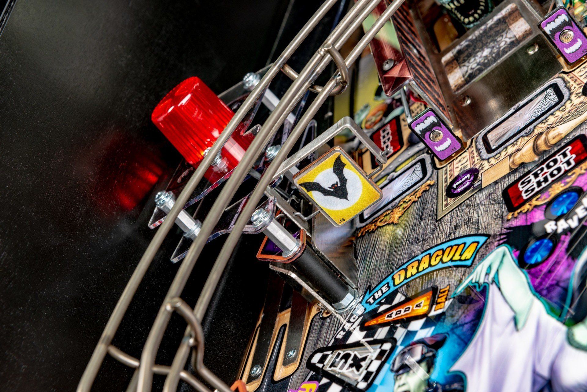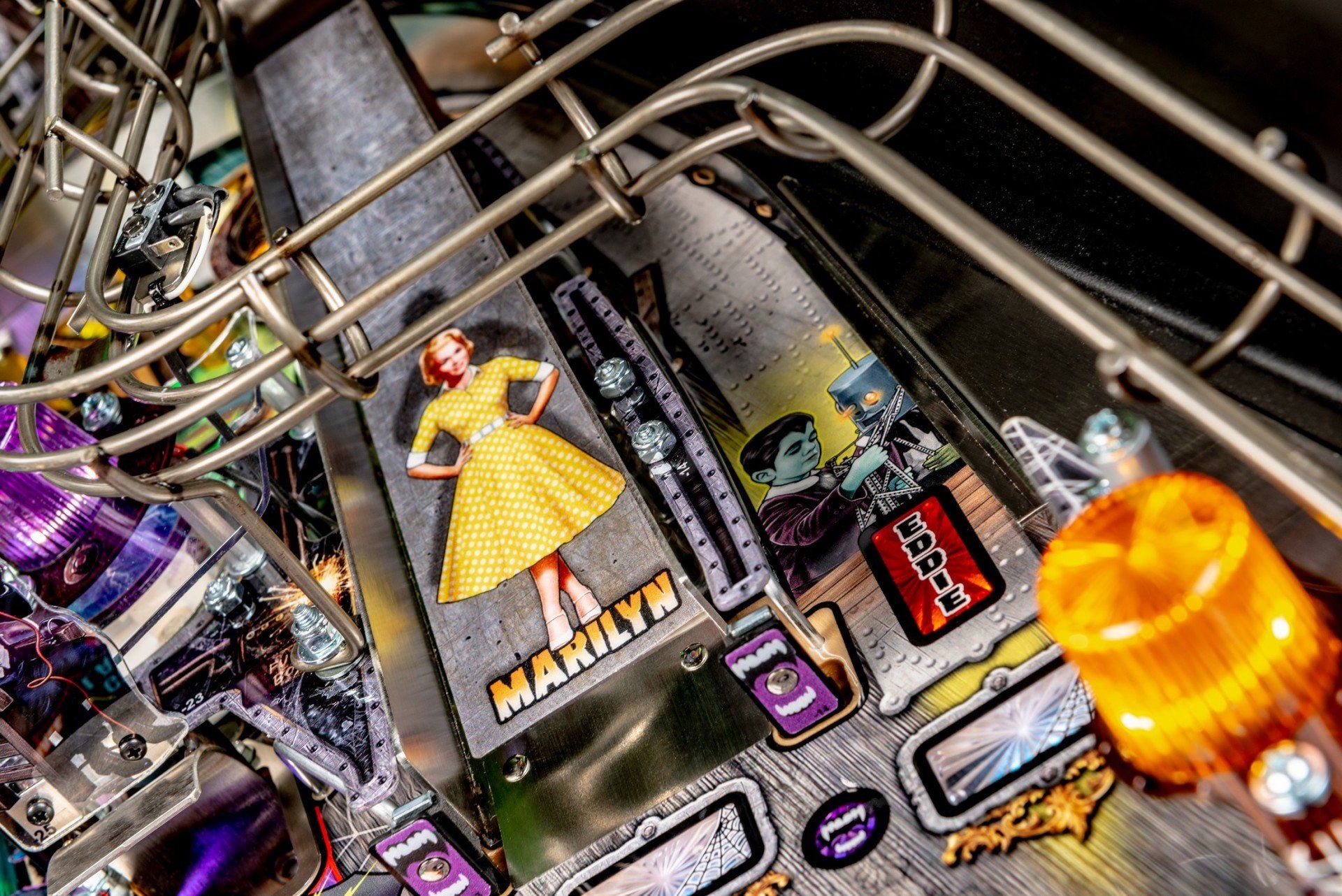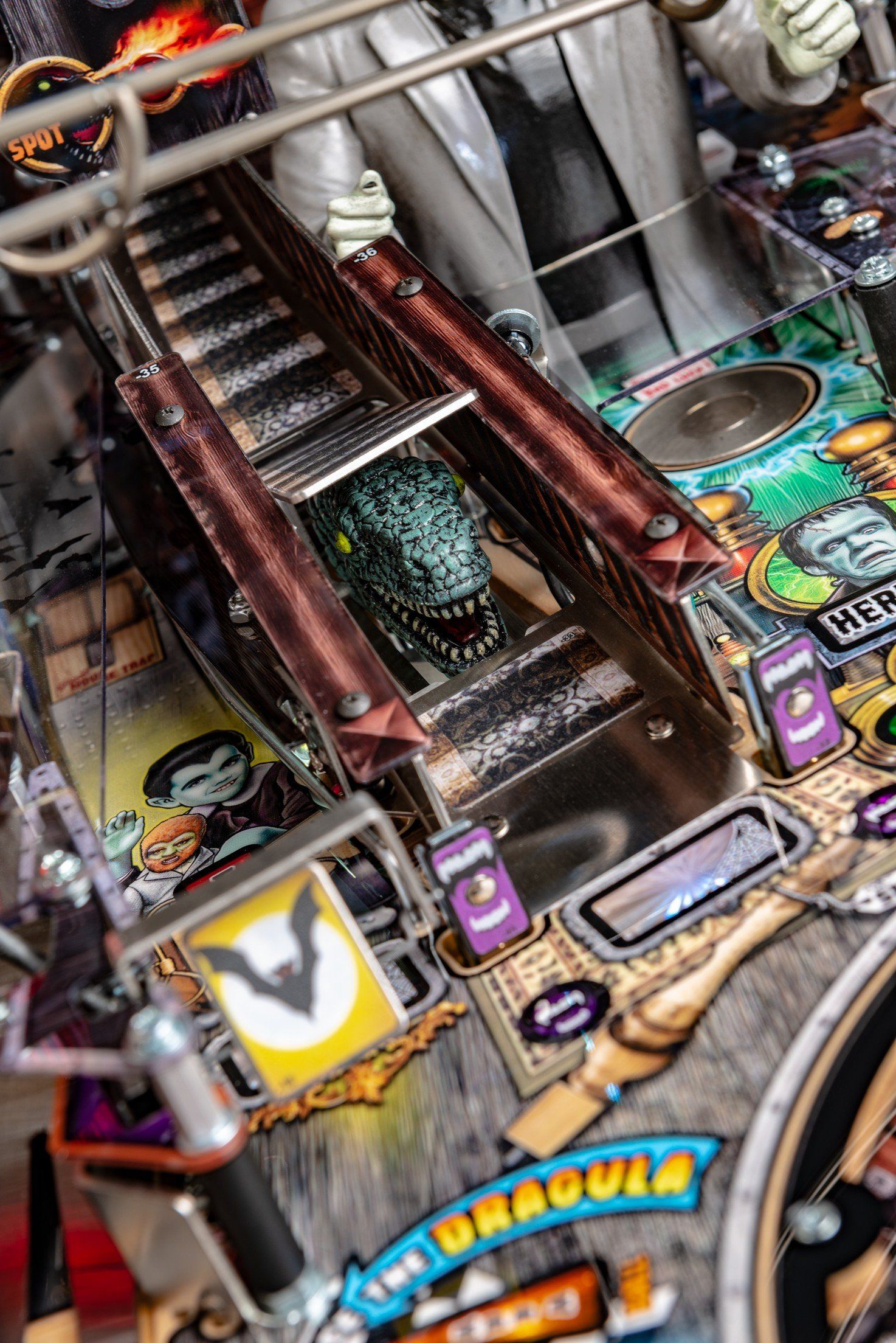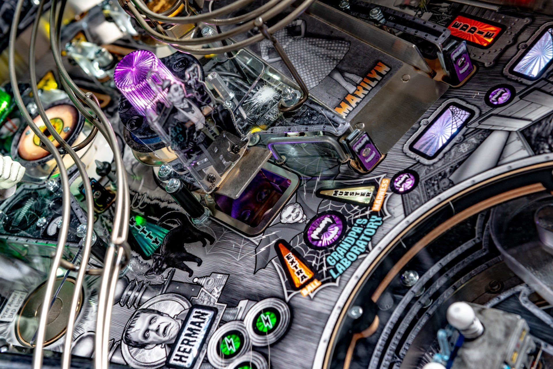 Los modelos The Munsters Pro, Premium y Limited Edition de Stern presentan un arte impresionante y distintivo dibujado a mano. Cada juego cuenta con un juguete Herman bash esculpido personalizado con captura de bola magnetizada, destacando la multibola Herman. Además, todos los modelos incluyen un juguete emergente Spot bash escondido debajo de la rampa izquierda, un auto de juguete Drag-U-La esculpido personalizado presentado cerca de un pateador de carril de tirador izquierdo, así como una rampa abatible y giratoria de metal .